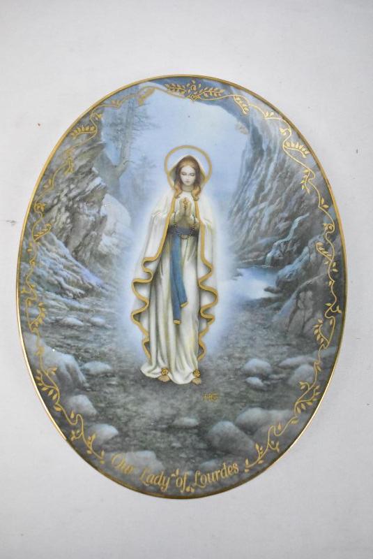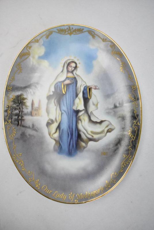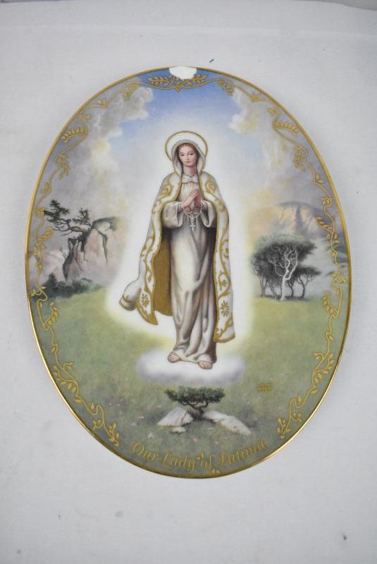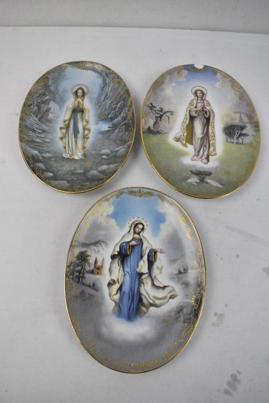 3 Piece "Our Lady" Decorative Plates, Oval - 1 Chipped
