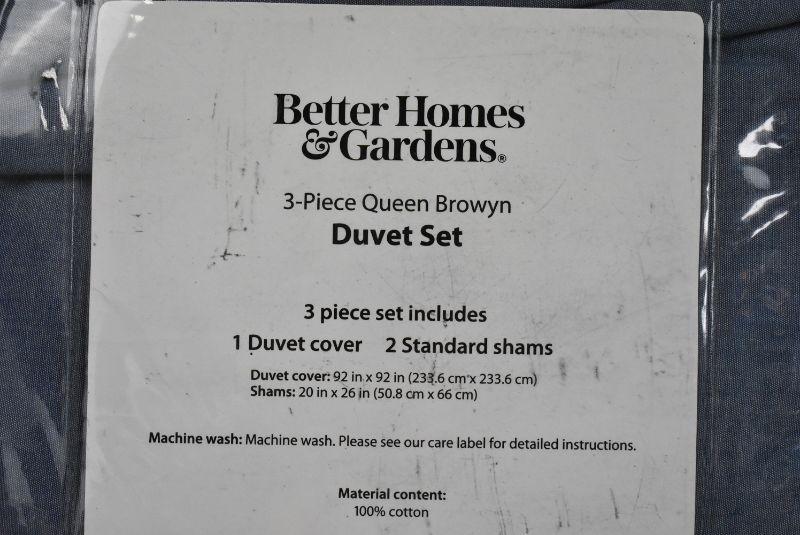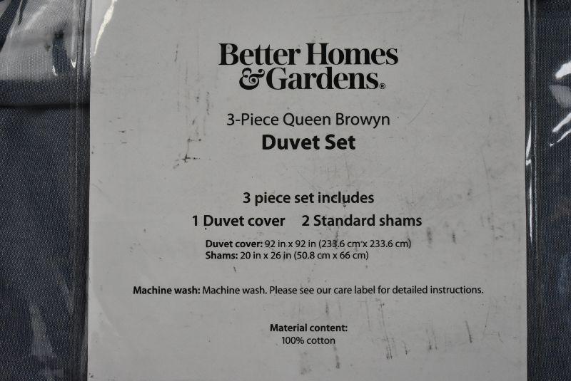 3 Piece Queen Bronwyn Duvet Set, Blue Denim Chambray, Better Homes and Gardens - New