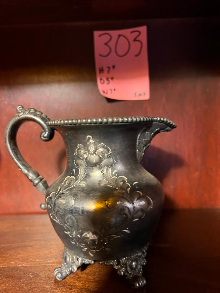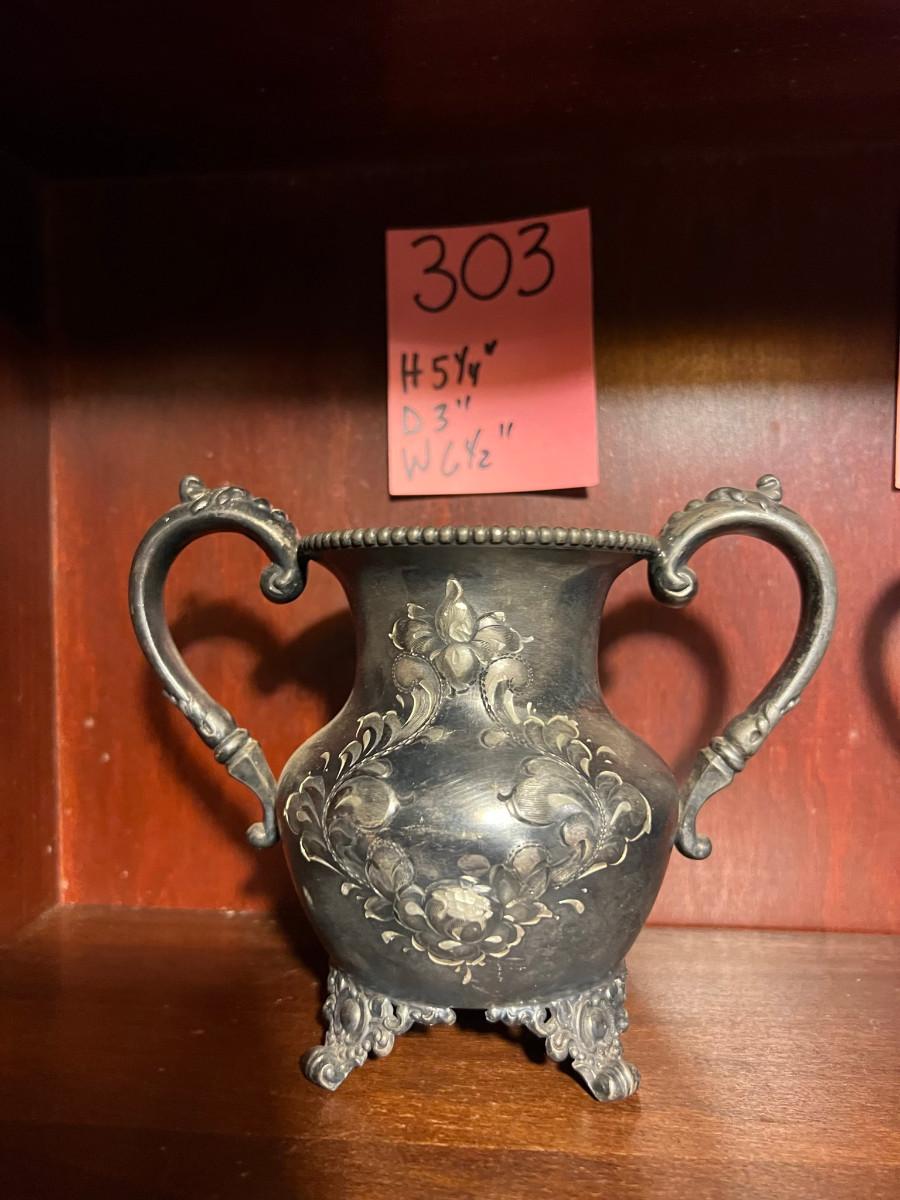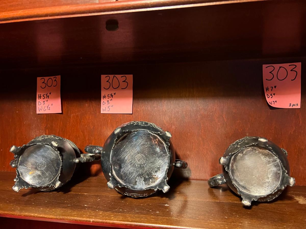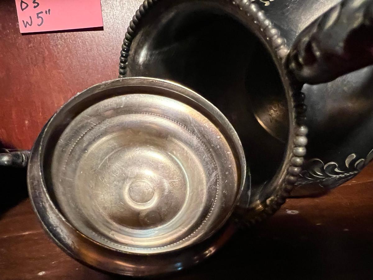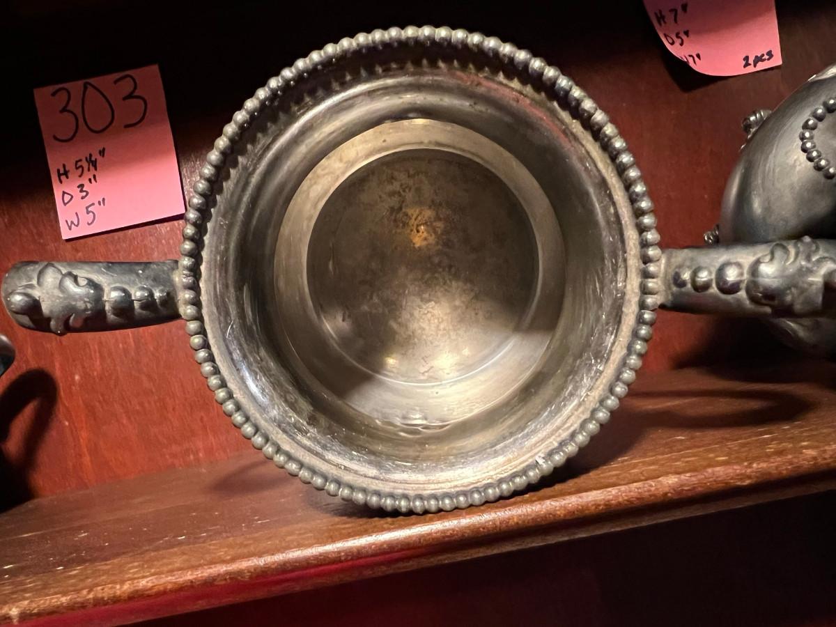 Victor Silver Co. Quadruple plated 1 piece with lid 7" x 5" x 7", creamer 5 1/4" x 3" x 5", Sugar 5 1/4" x 3" x 6.5" as is