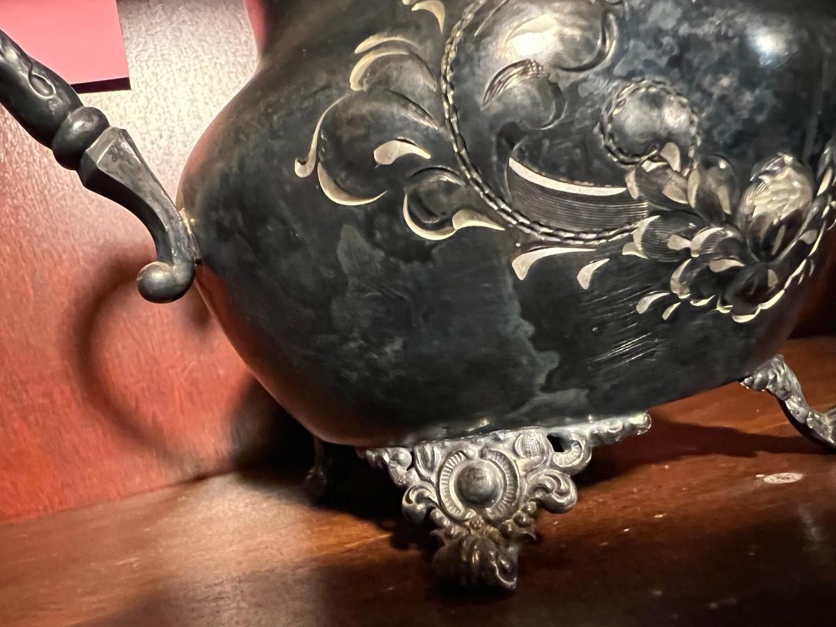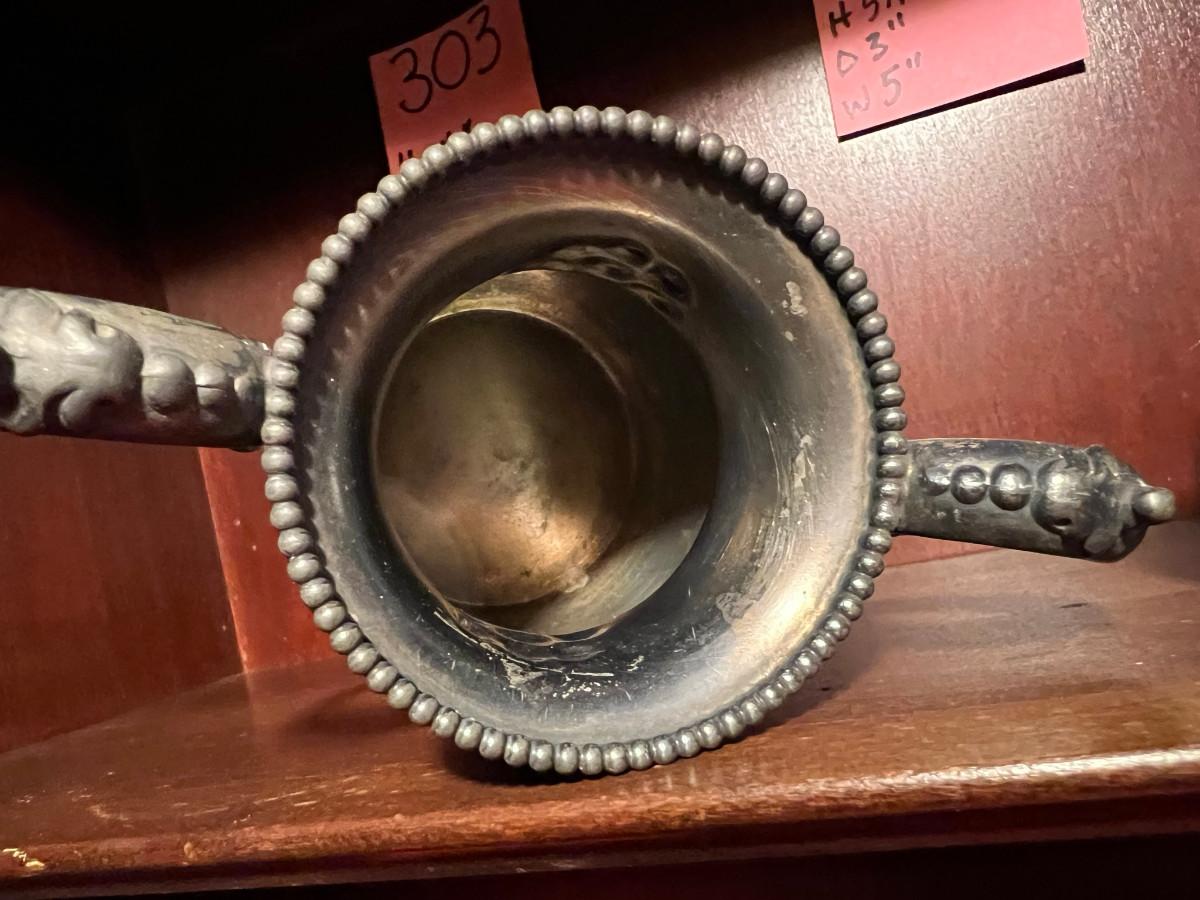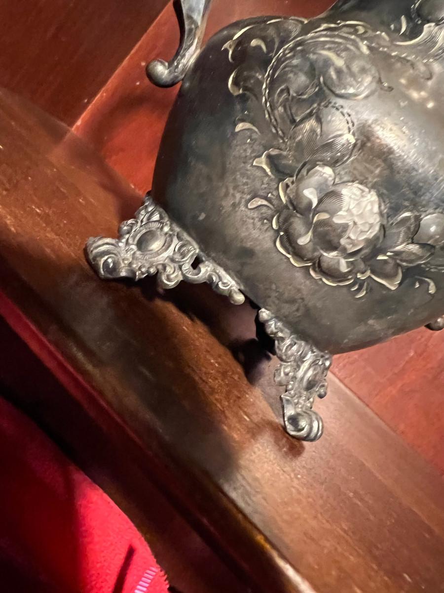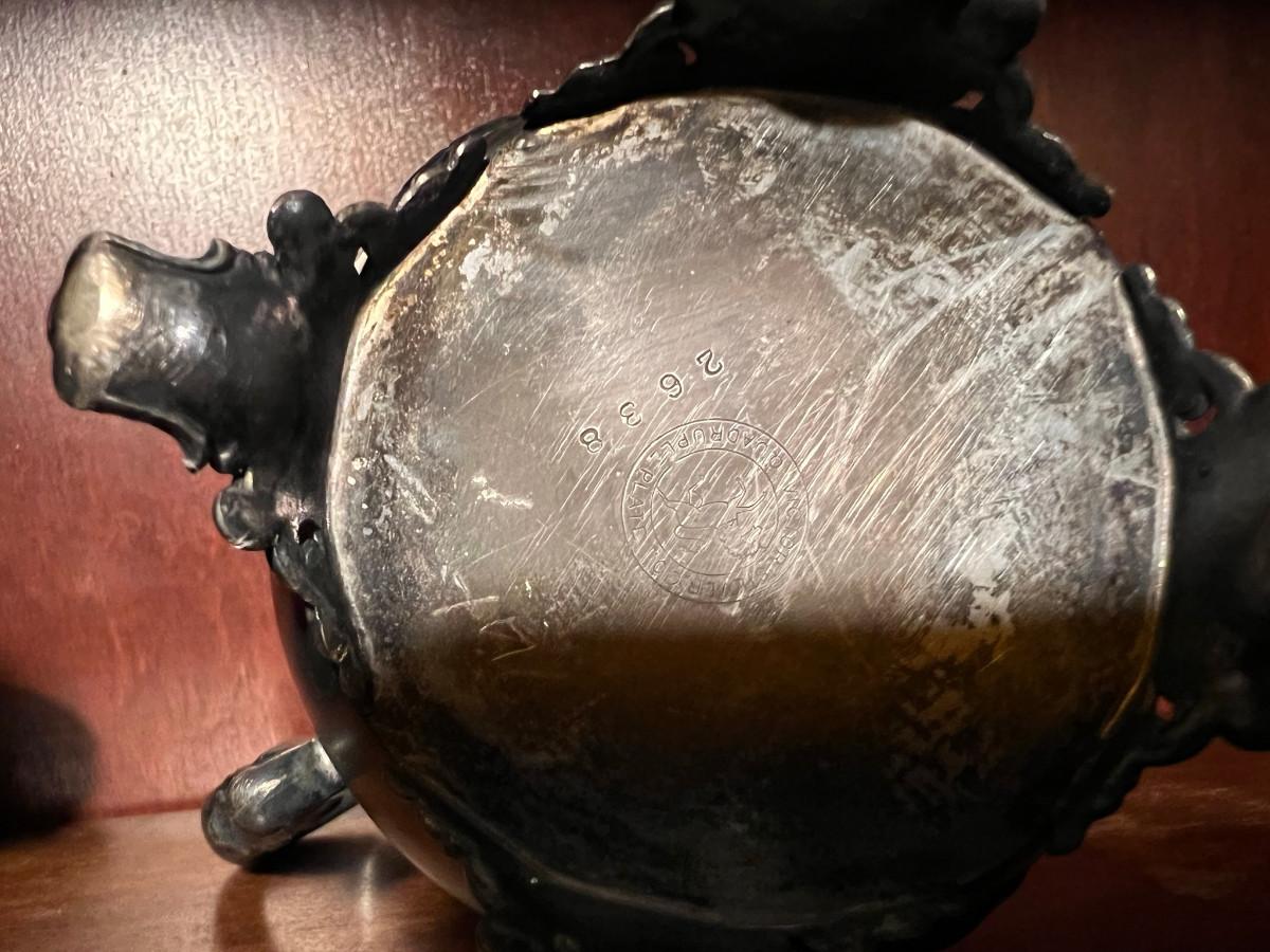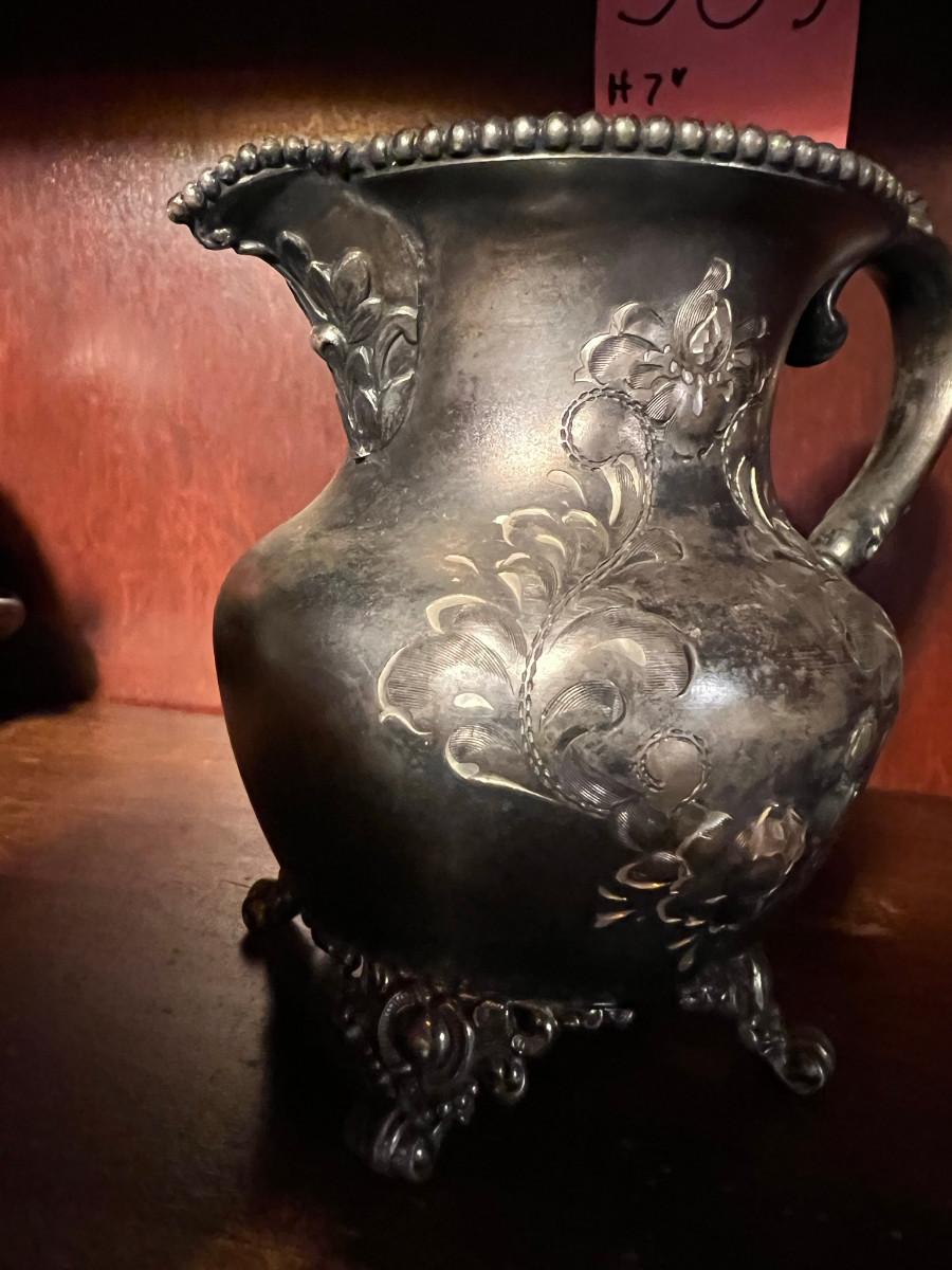 Victor Silver Co. Quadruple plated 1 piece with lid 7" x 5" x 7", creamer 5 1/4" x 3" x 5", Sugar 5 1/4" x 3" x 6.5" as is