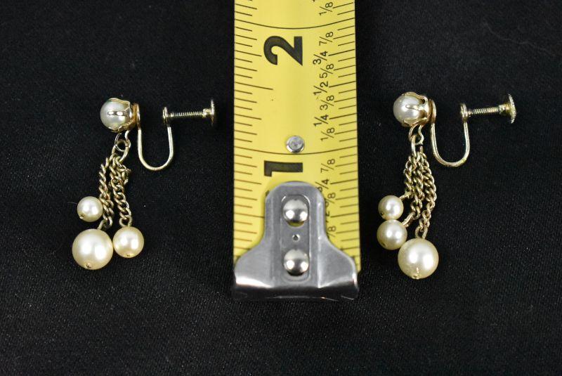 3 Piece Set Costume Jewelry Faux Pearls Necklace, Earrings & Bracelet - Vintage