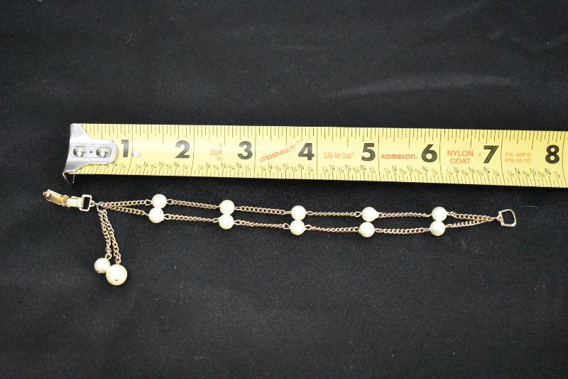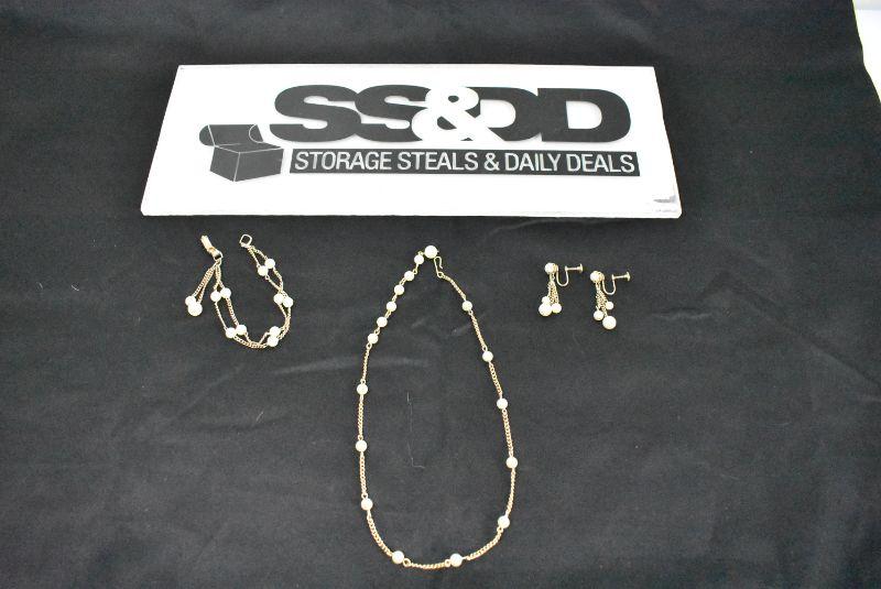 3 Piece Set Costume Jewelry Gold Tone & Faux Pearls Necklace, Earrings & Bracelet - Vintage
