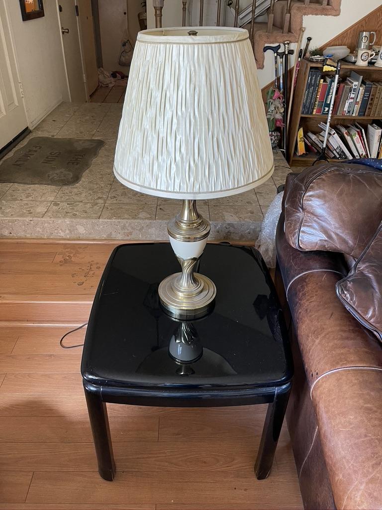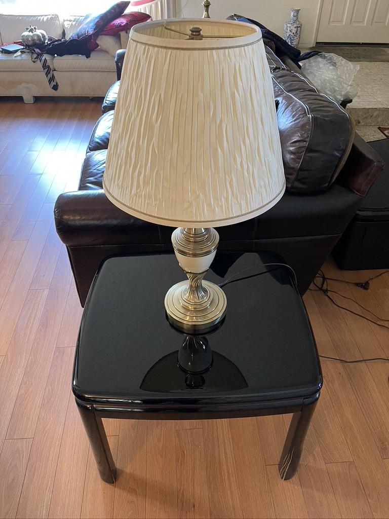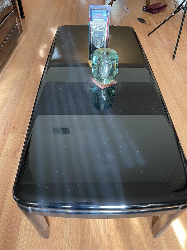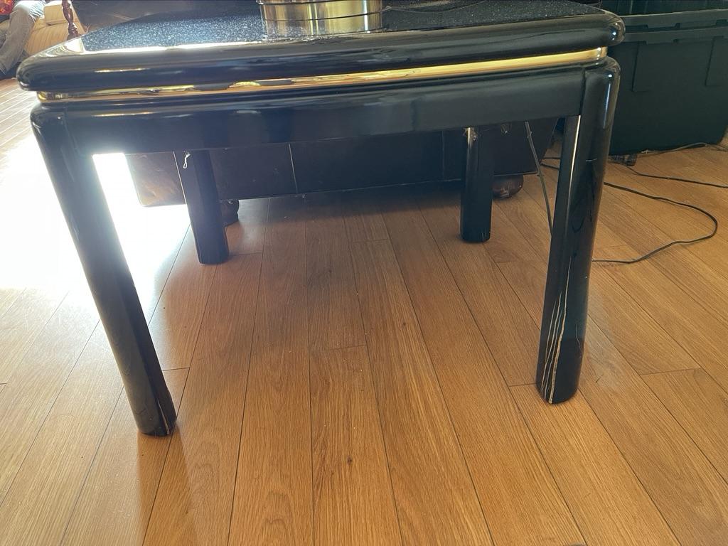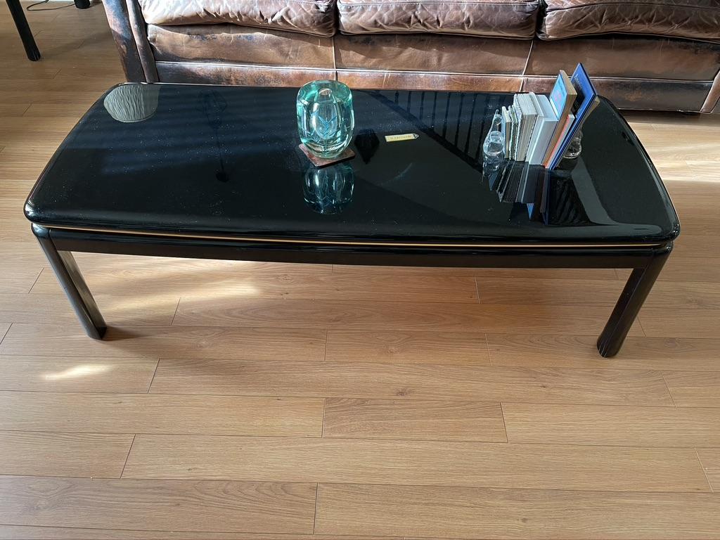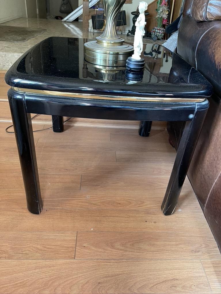 3 Piece Set - Mirror Finish Jet Black Coffee Table, 2 Side Tables. Some wear and tear on the legs but good condition.