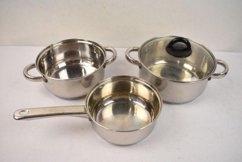 3 Piece Stainless Steel Cookware + 1 Lid