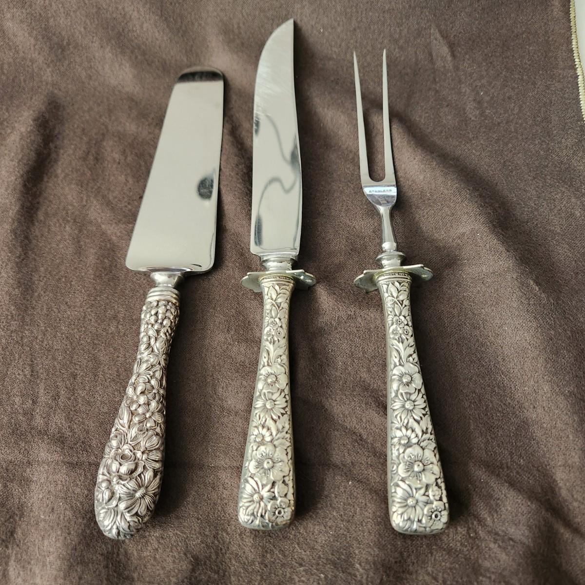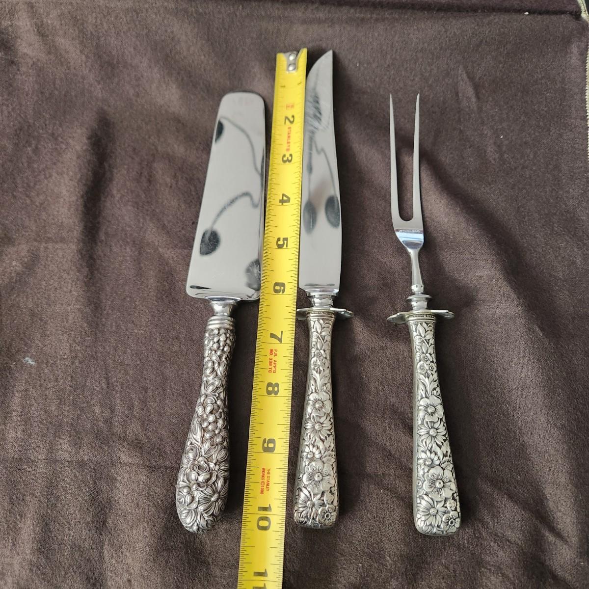 3 piece Stieff Sterling Silver Serving Set Carving Knife, Fork, Cake Knife