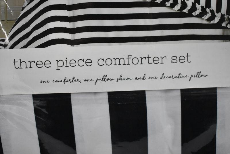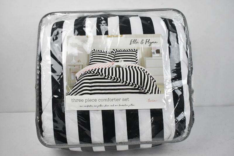 3 Piece Twin Comforter Set by Elle & Flynn: B&W Stripes, Pink Polka Dots, Decorative Bunny Pillow - New
