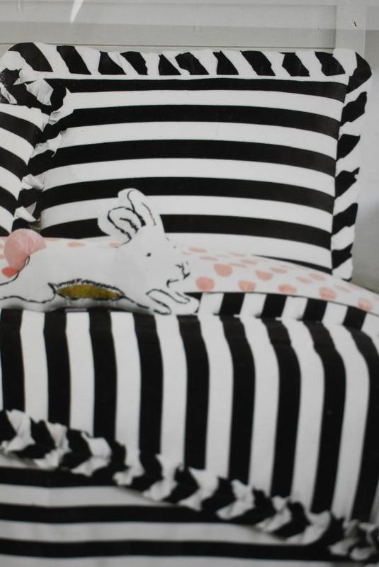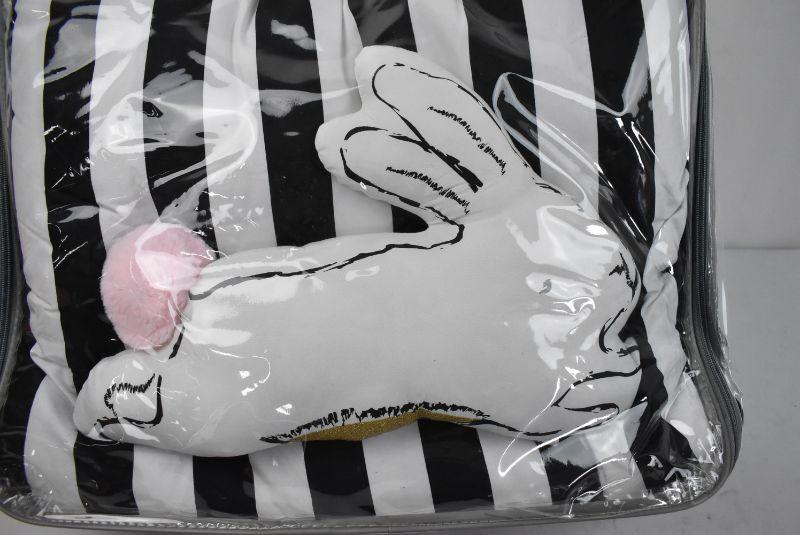 3 Piece Twin Comforter, B&W Stripes, Pink Polka Dots, Bunny Pillow - New