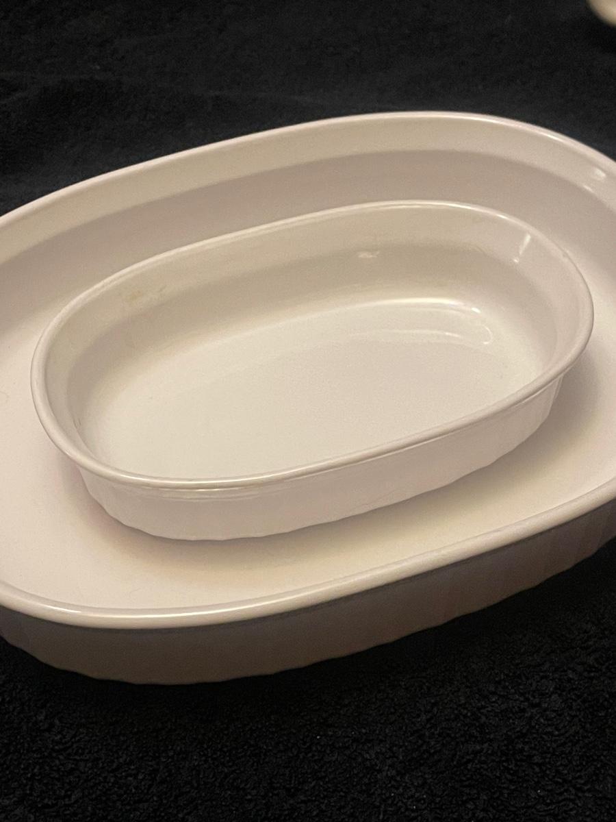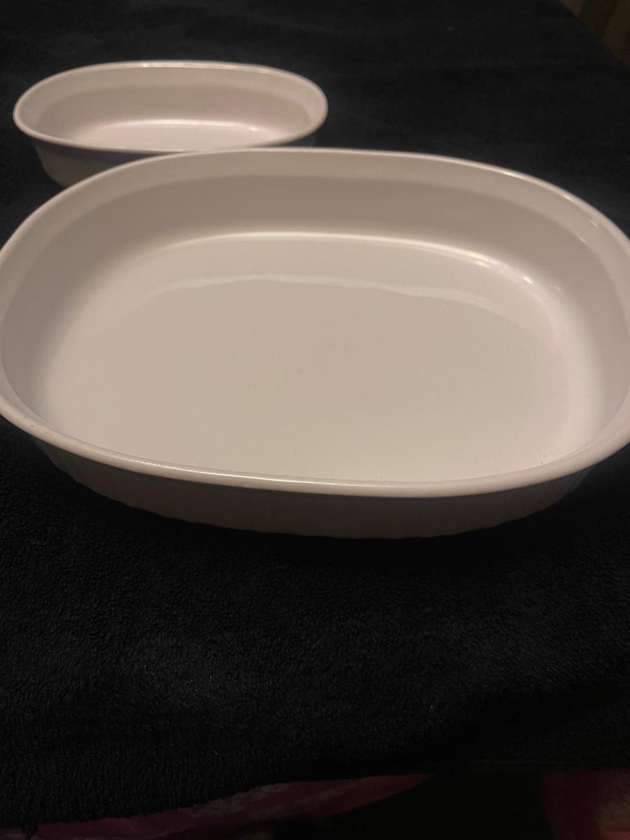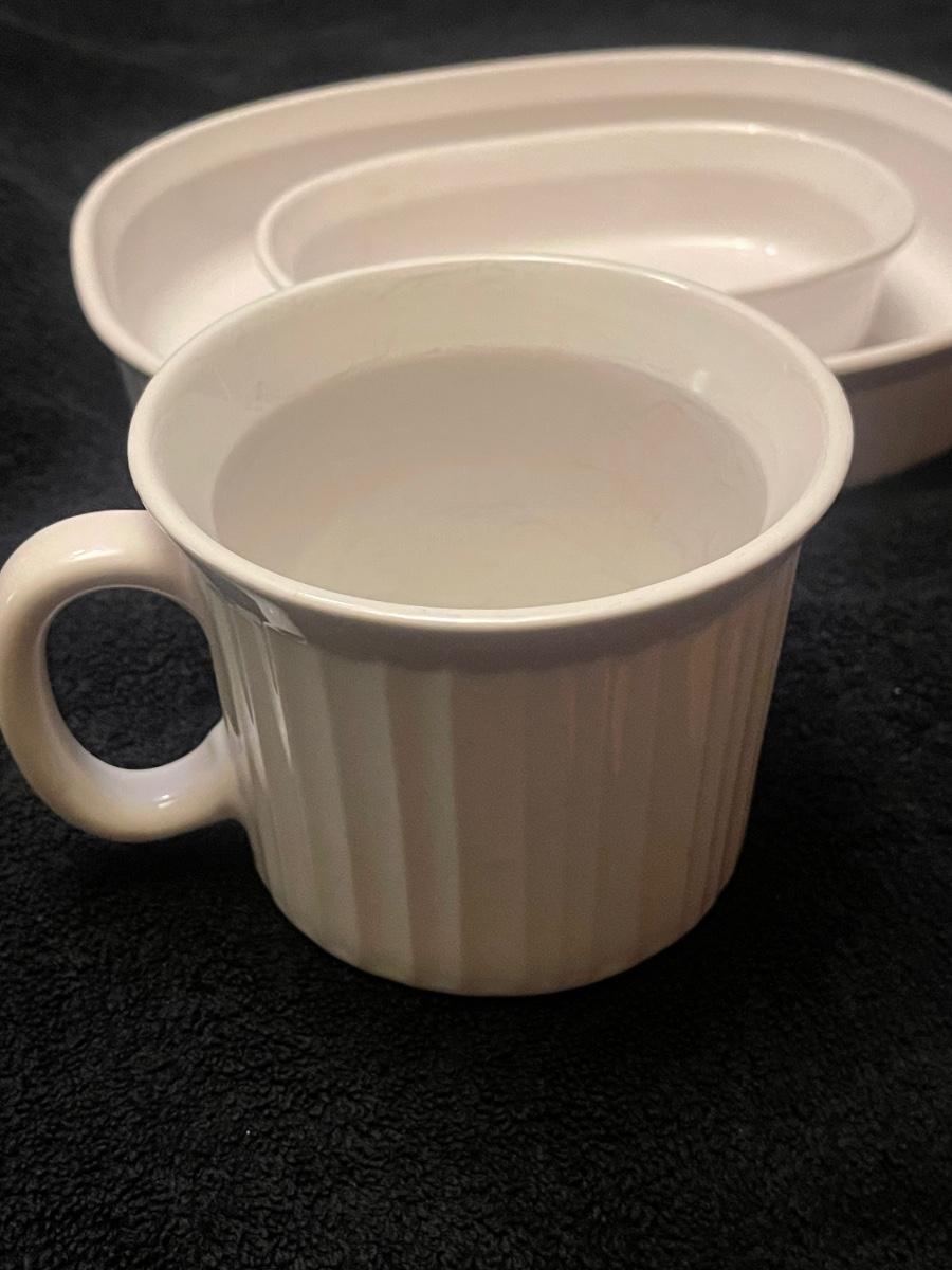 This is a 3 piece vintage Corningware lot. Comes with 2 pans and misc mug.