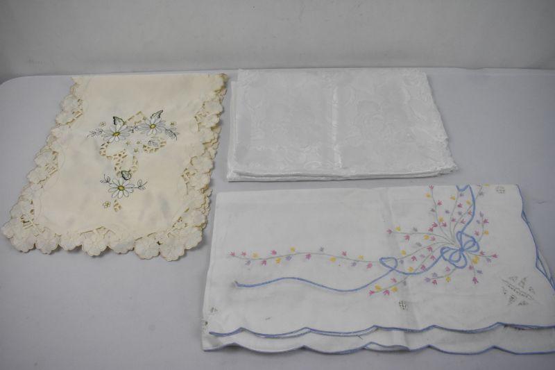 3 Piece Vintage Linens: 1 Table Runner & 2 Table Cloths