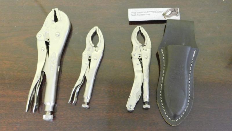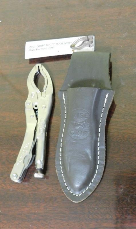 3 Piece Vise Grip Set Including Leather Sheath. Tools appear to be largely unused condition.