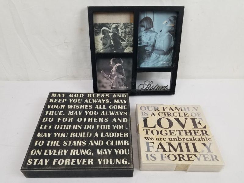 3 Piece Wall Decor: Sisters Picture Frame, "May God Bless...", and "Our Family..."