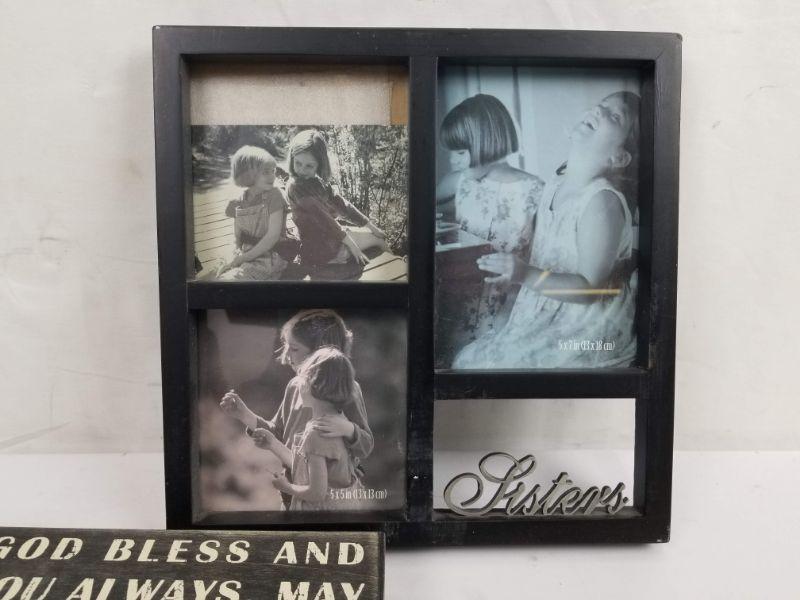 3 Piece Wall Decor: Sisters Picture Frame, "May God Bless", and "Our Family..."