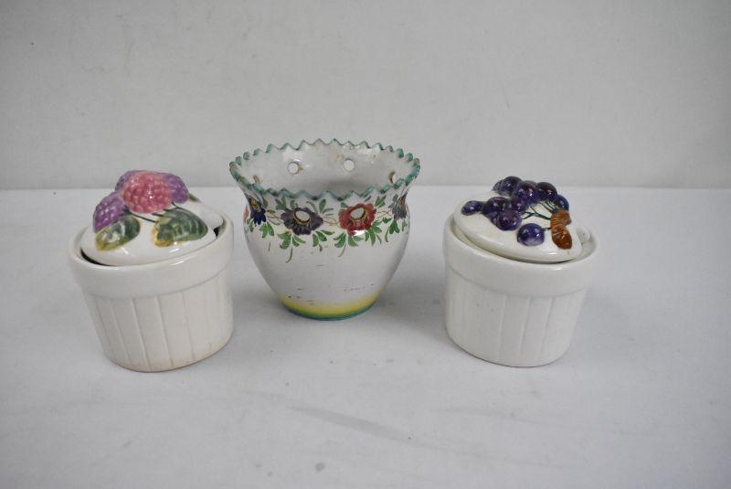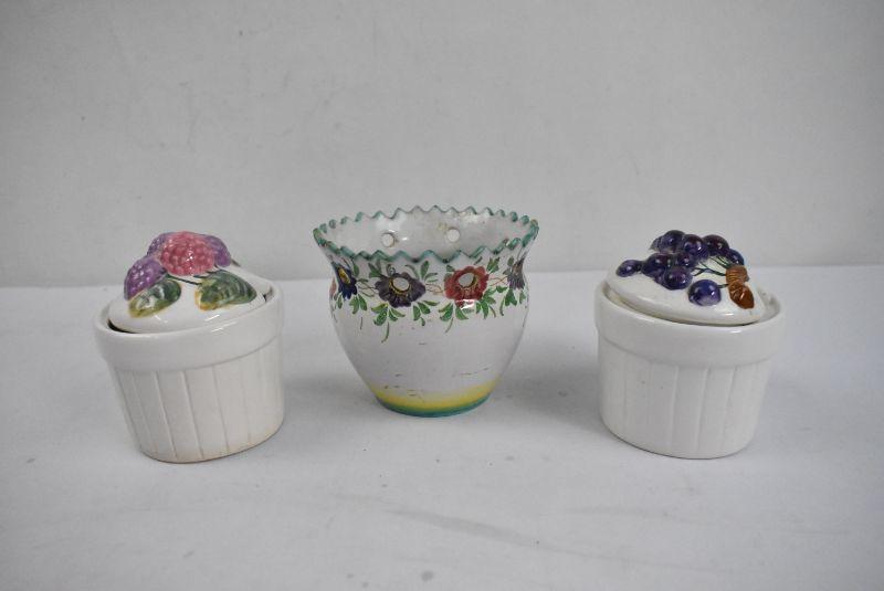 3 Piece White Glass: 2 for Jam & 1 for Flowers