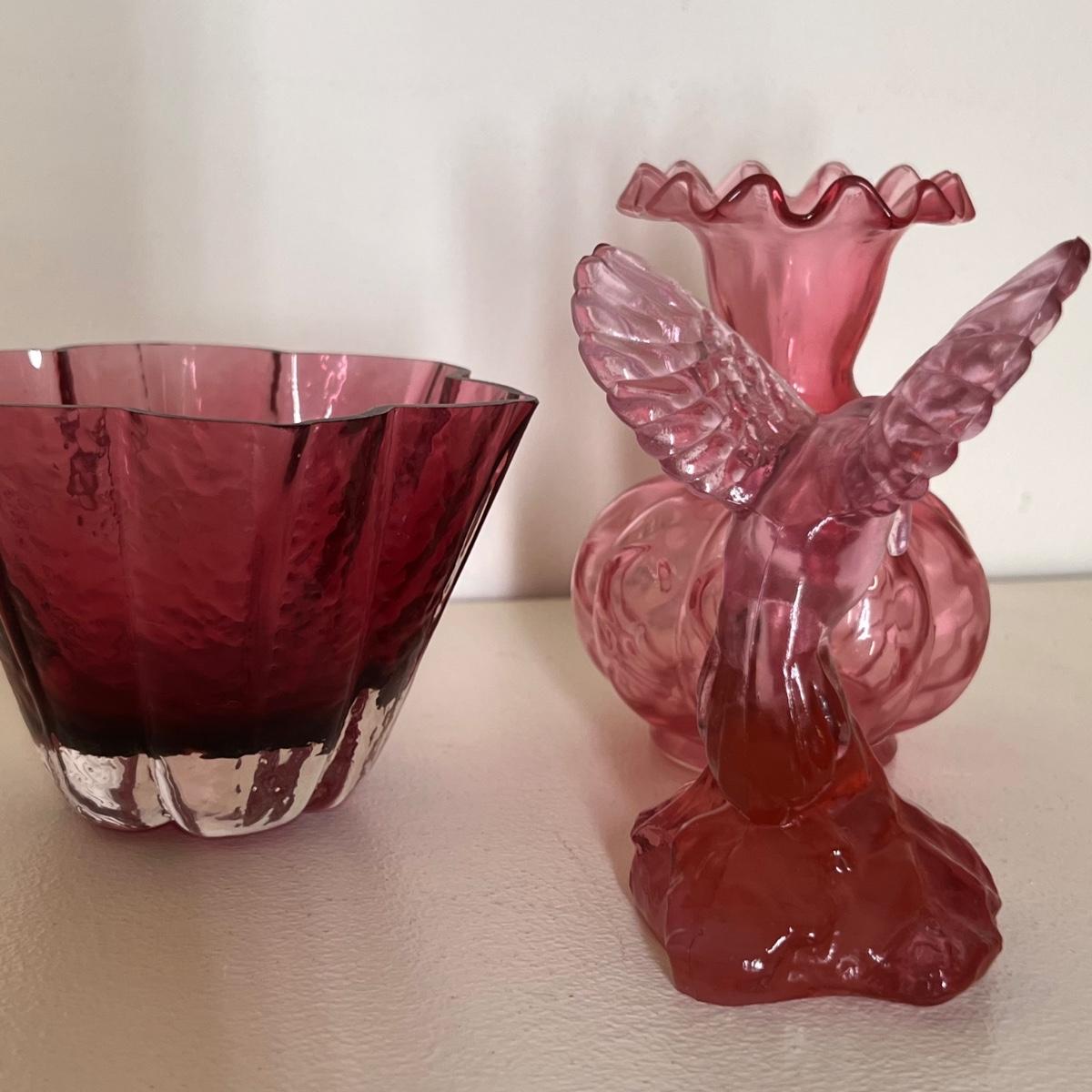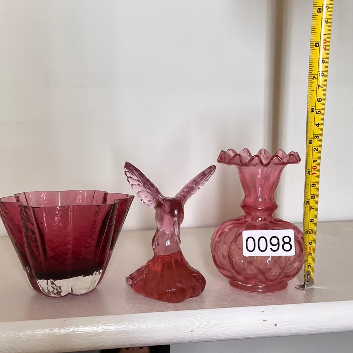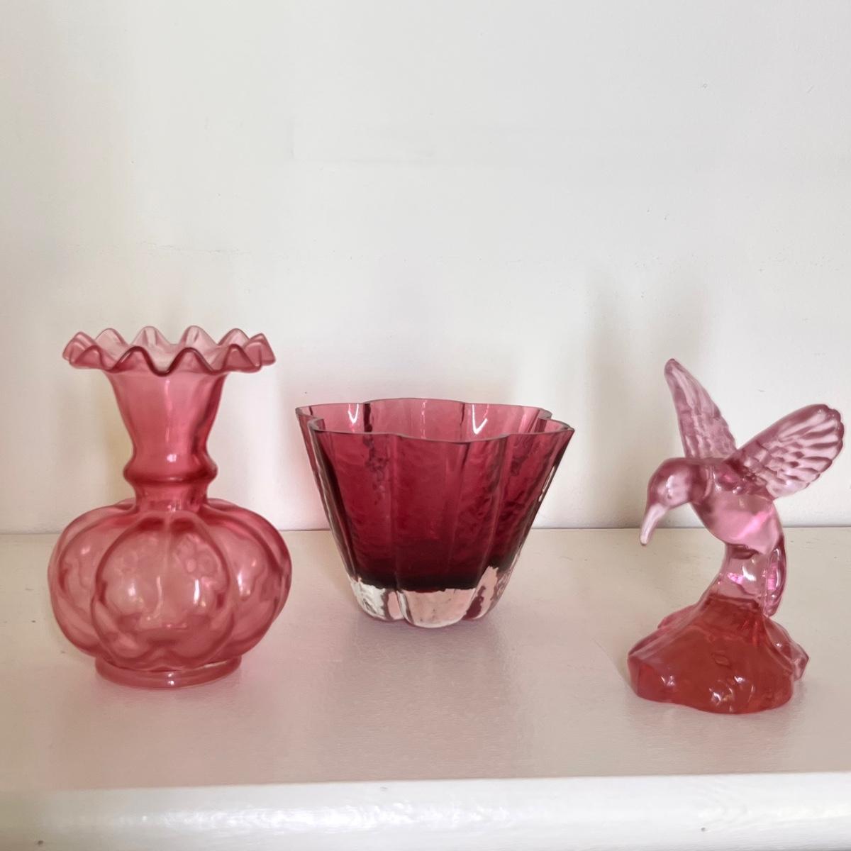 3 Pieces Cranberry Glass