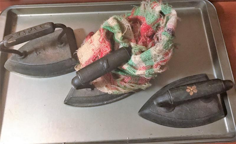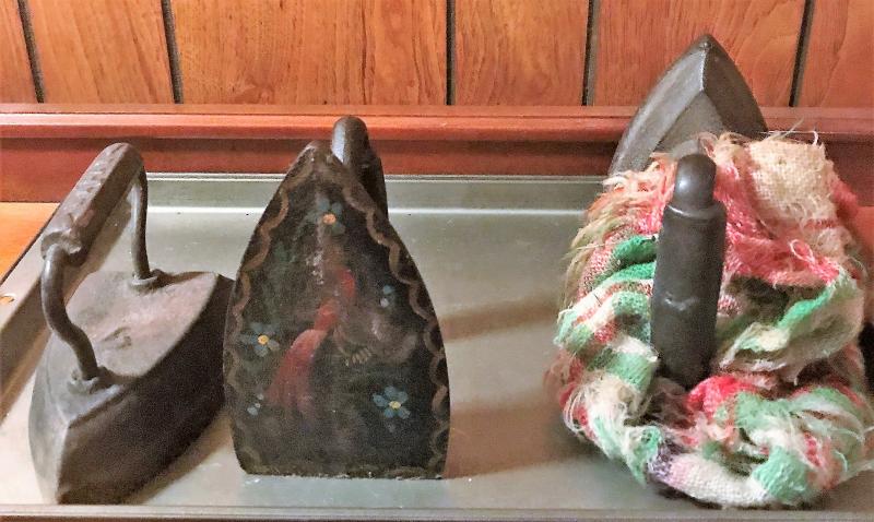 All time cast iron iron one is labeled wapak and another has been hand painted and decorated please note for shipping that these are extremely heavy items and look at the pictures for all the detail.