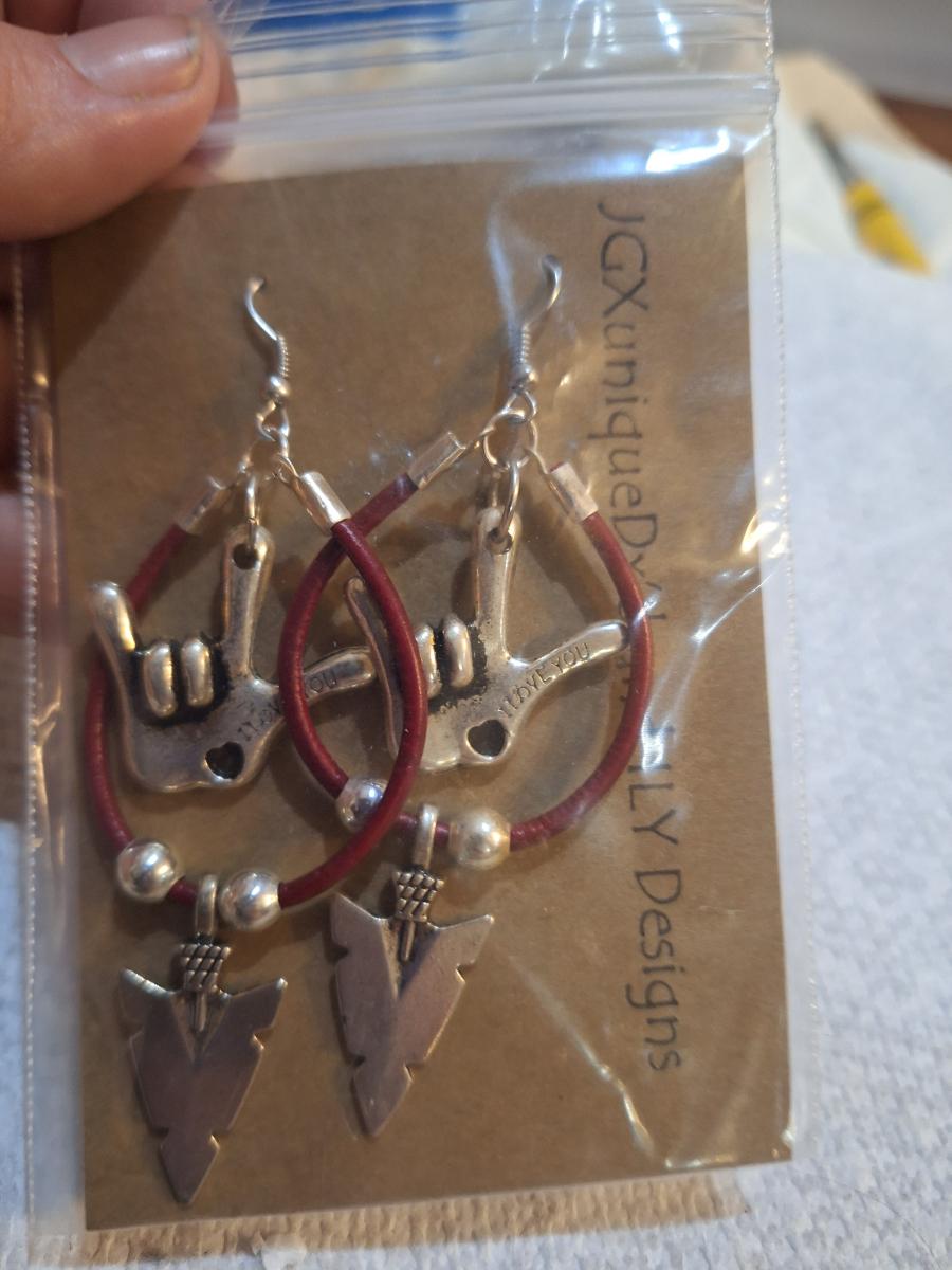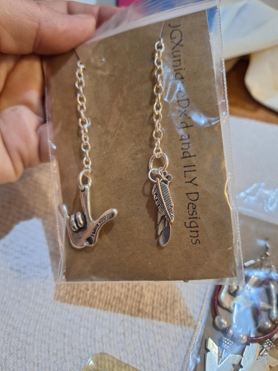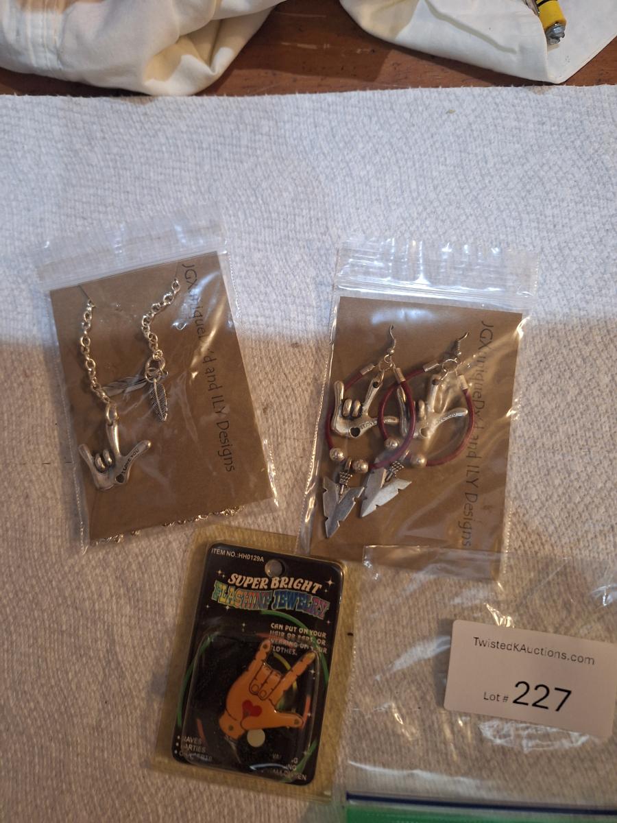 3 pieces of jewelry 2 which have the I love you sign language symbol