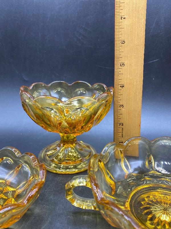 3 Pieces of Marigold Amber Depression Glass Relish Nut Candy Dishes