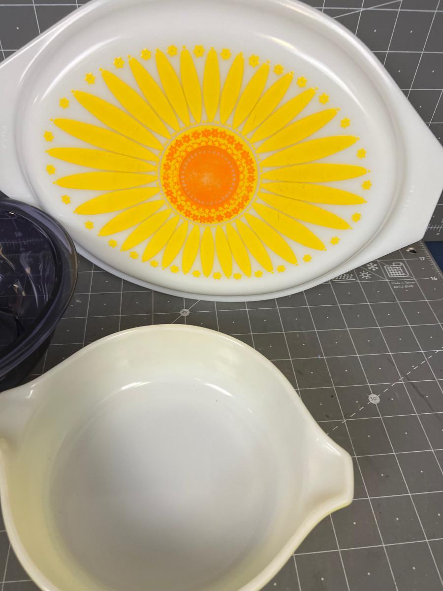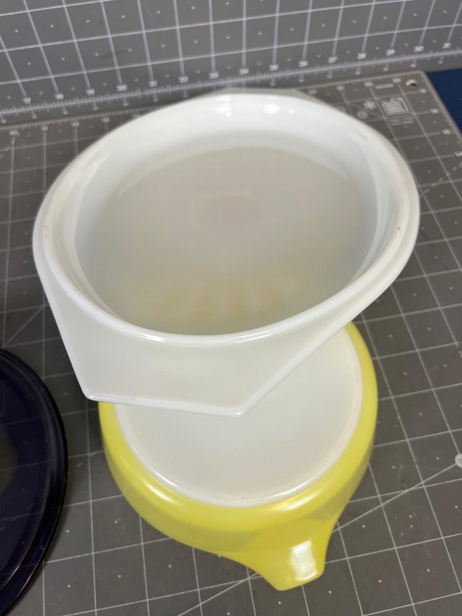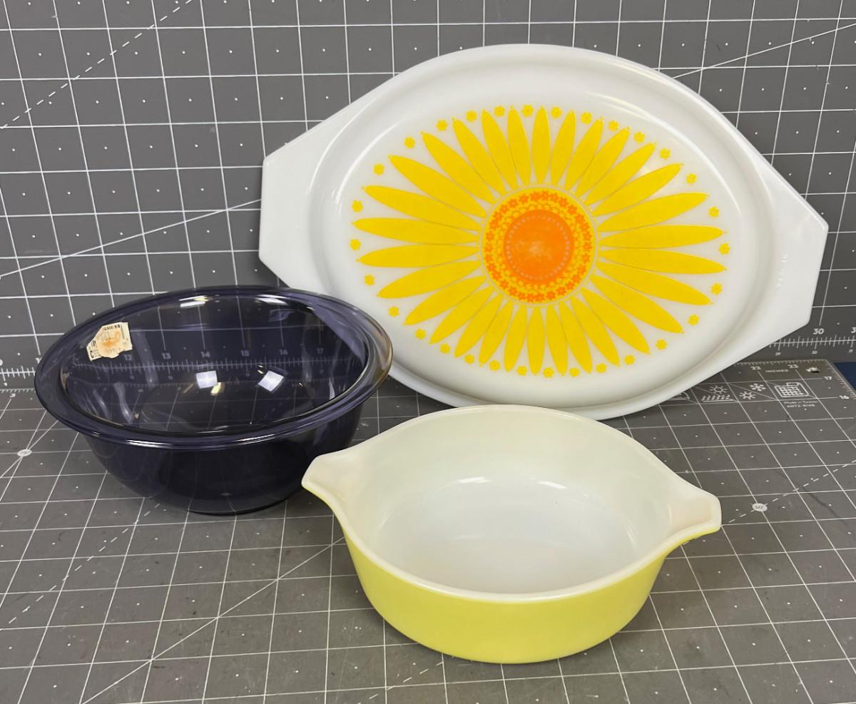 3 pieces of Vintage Pyrex: Lid, Casserole and Bowl Yellow.