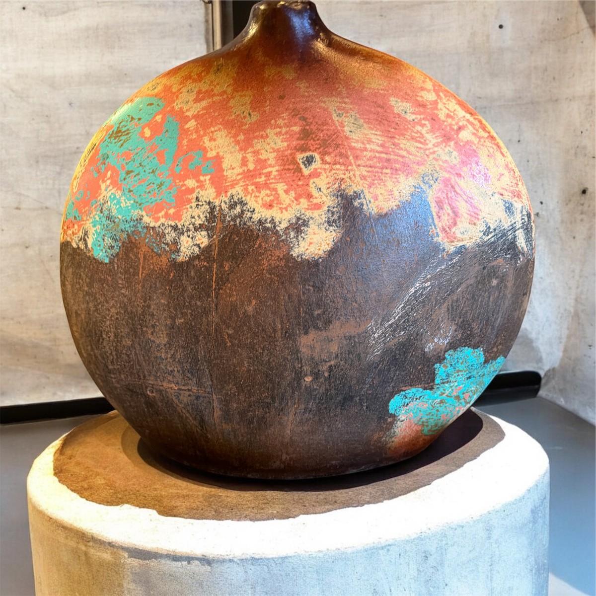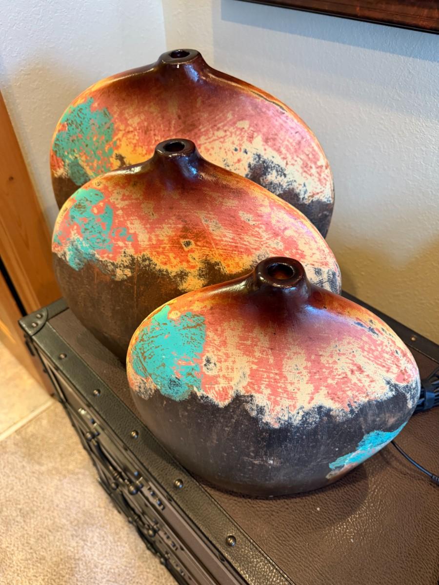 Set of Three Decorative Rustic Style Ceramic Vases. Made in Mexico 15" 13" 12" Tall