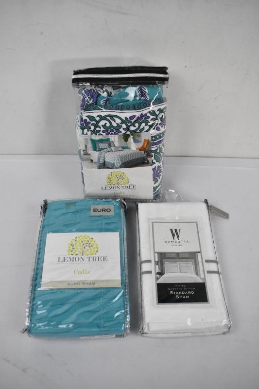 3 Pillow Shams: 1 Euro Size & 2 Standard Size: Turquoise & White - New