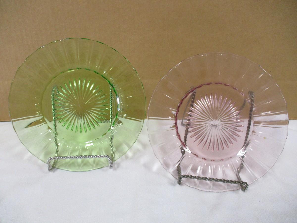 3 Pink & 4 Green Heisey Plates