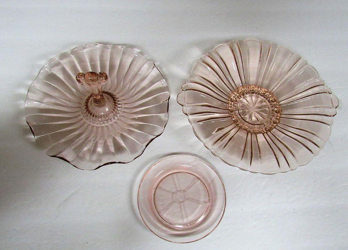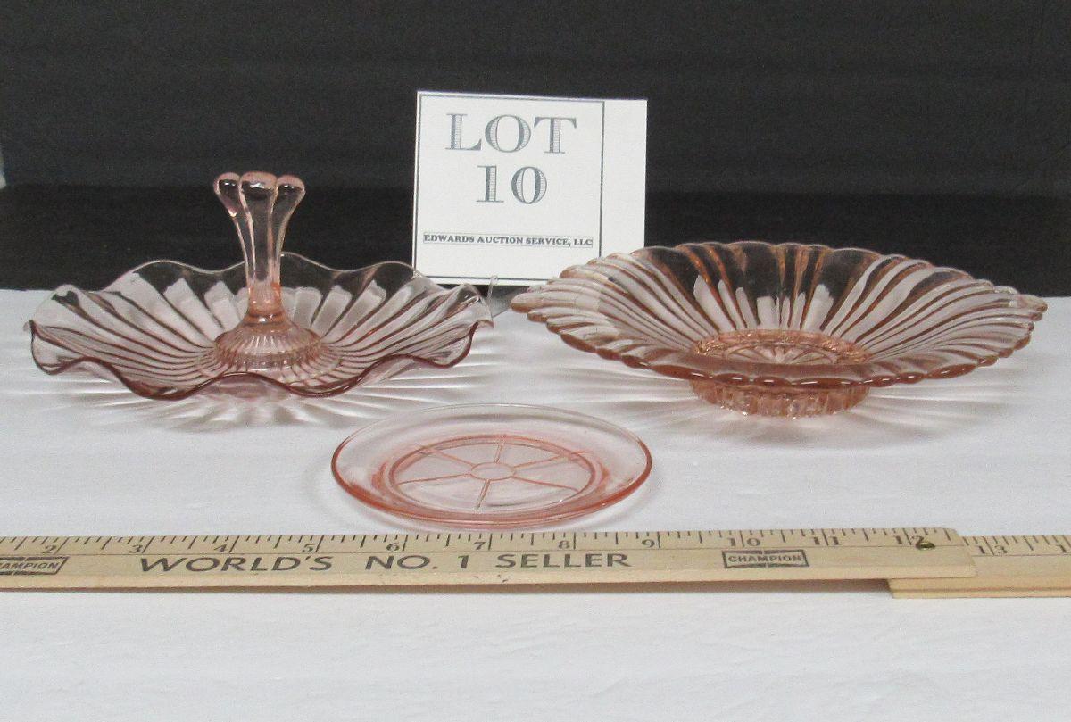 3 Pink Depression Glass Dishes, Old Cafe Bowl, Candy Dish, Coaster