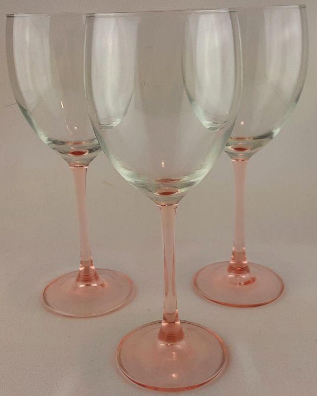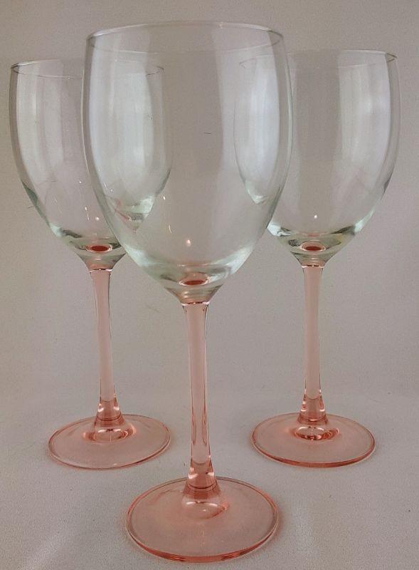 3 Pink Stemware Glasses