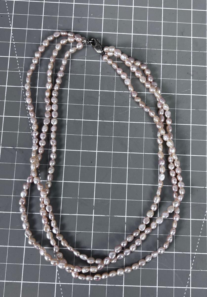 3 Pink Strands of Fresh Water Peals & Sterling Clasp