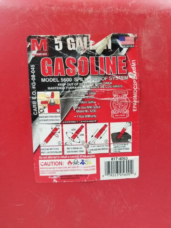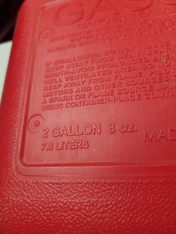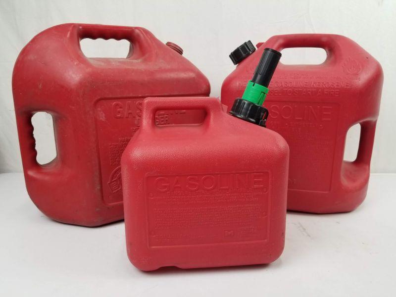 3 Plastic Gas Cans: Two 5 Gallon and One 2.5 Gallon