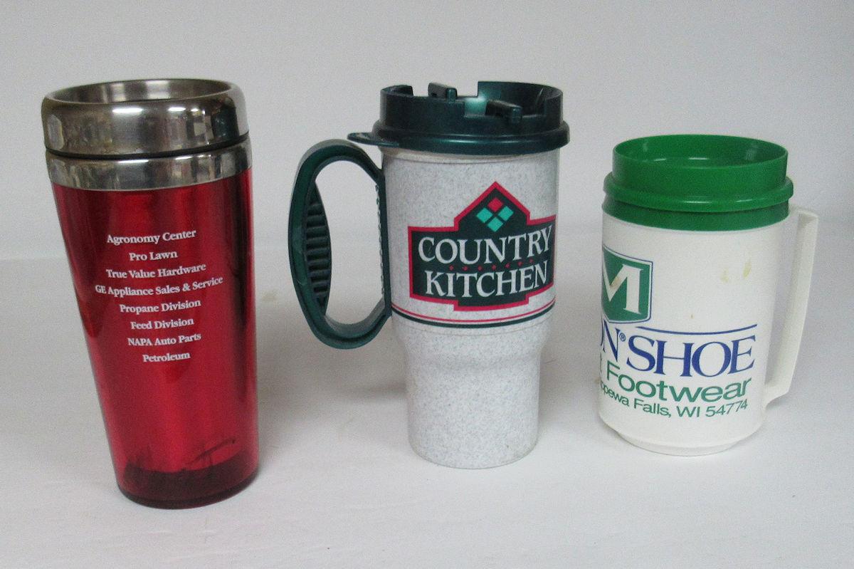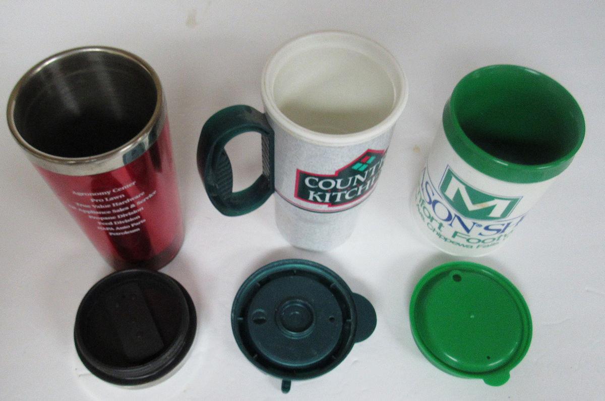 3 Plastic Drinking Cups With Covers, Country Kitchen, More