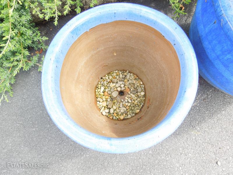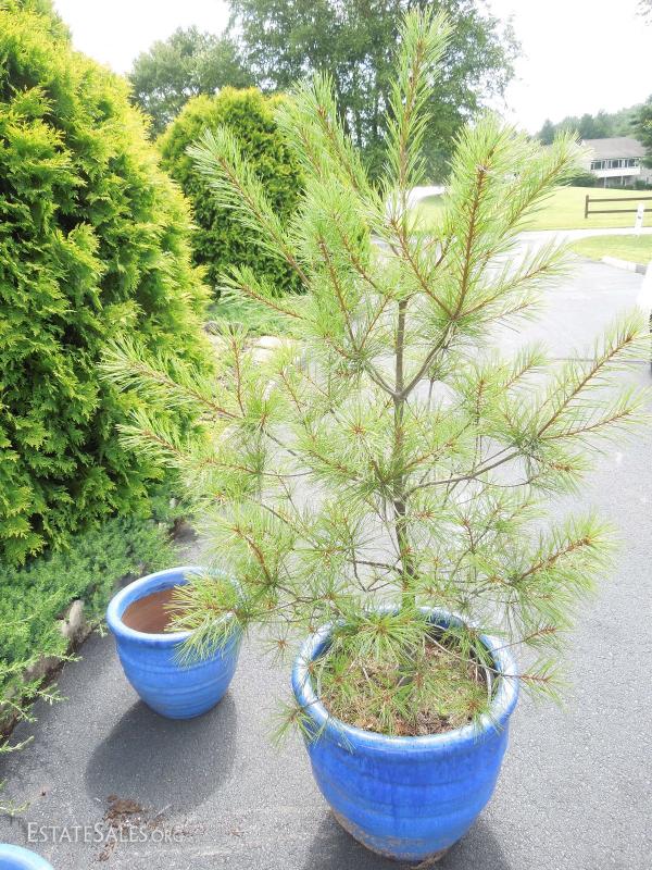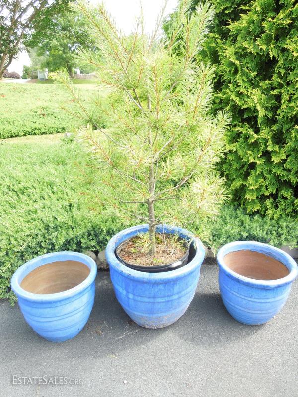 3 Pottery Planters and Pine Tree