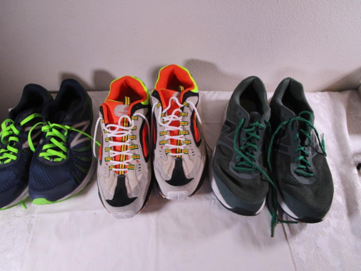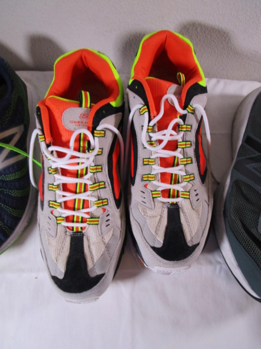 2 New Balance, 1 Sketchers, 1 pr size 14 with 4E width; 2 pr are size 14 with 2E width, lightly worn, no insoles