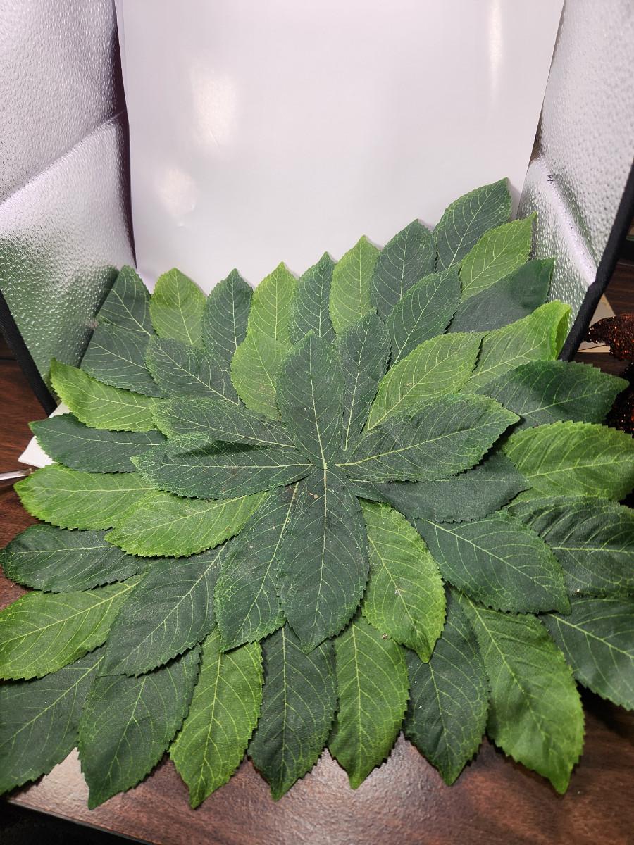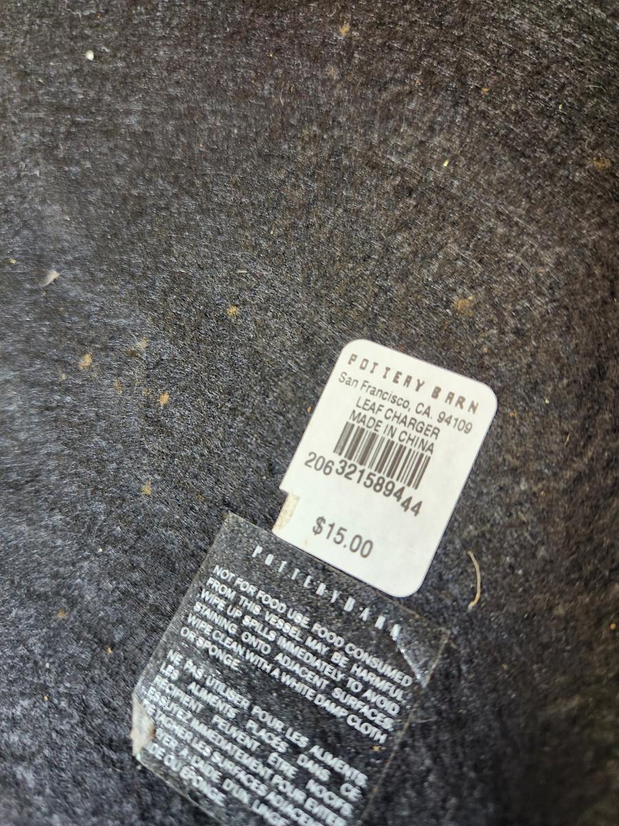 Leaf mats are from Pottery barn and the one with larger leaves needs re gluing.