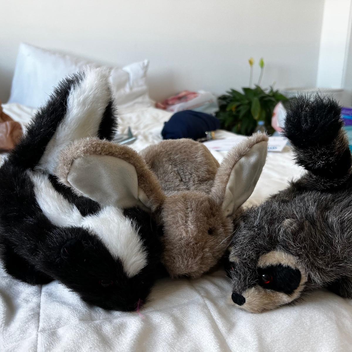 3 super cute animals folk puppets Raccoon skunk and rabbit. Great condition.