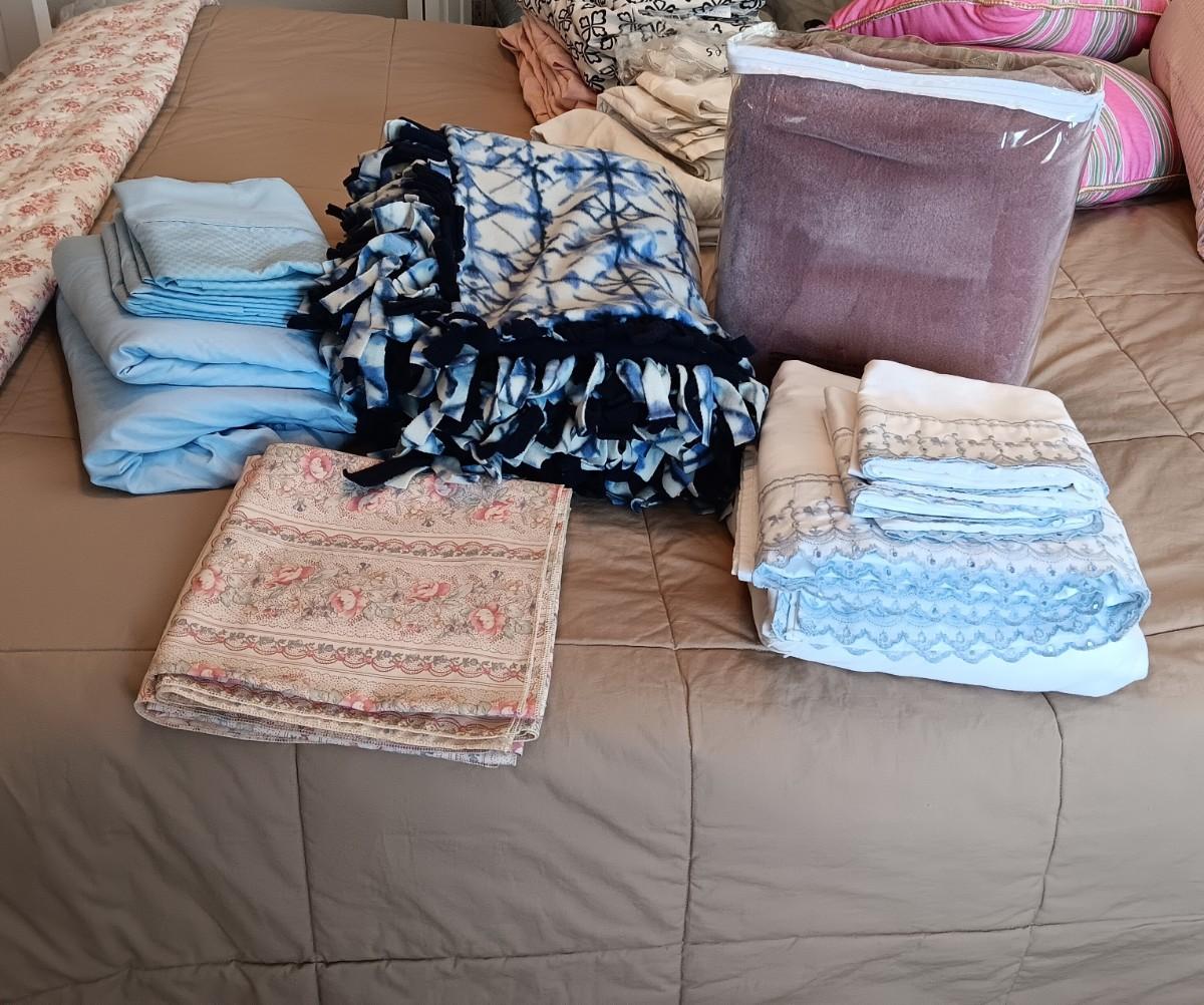 3 QUEEN SIZE SHEET SETS, TWIN AND THROW BLANKETS