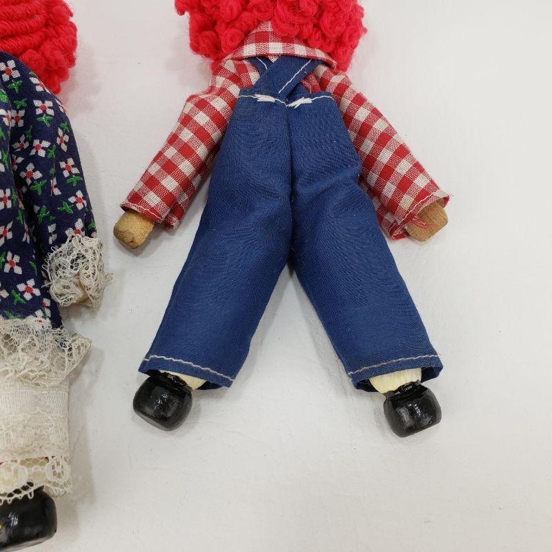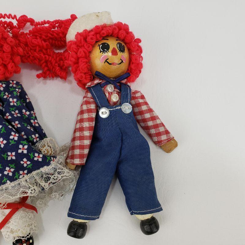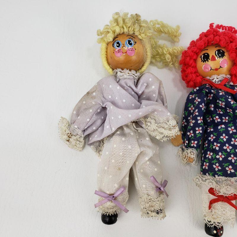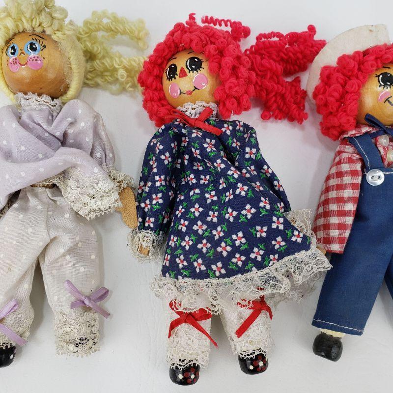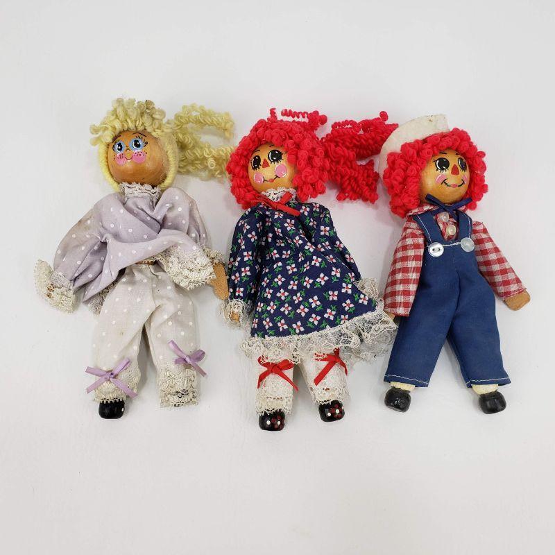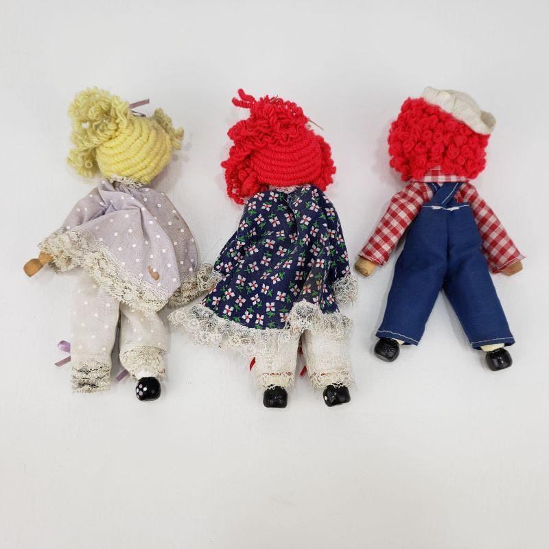 3 Raggedy Ann and Andy Clothespin Dolls - 7" Tall