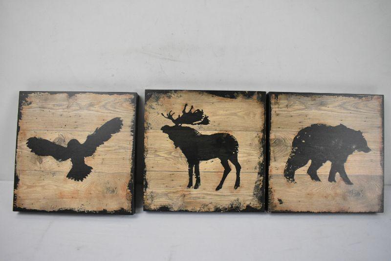 3 Reclaimed Wood Animal Silhouette Wall Decor Pictures 10x10