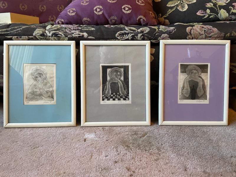 a set of 3 prints of a religious figure praying 15” x 12”