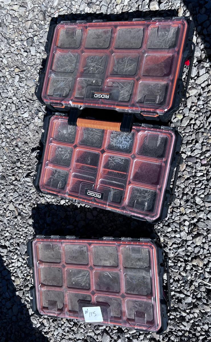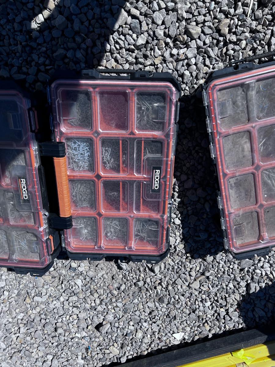 (3) Ridgid Pack Out Boxes Full of Nails & Bolts