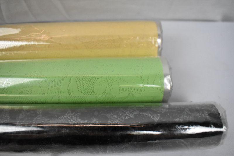 3 Rolls Transparent Gift Wrap: Yellow Lace, Green Lace, Black Lace - New