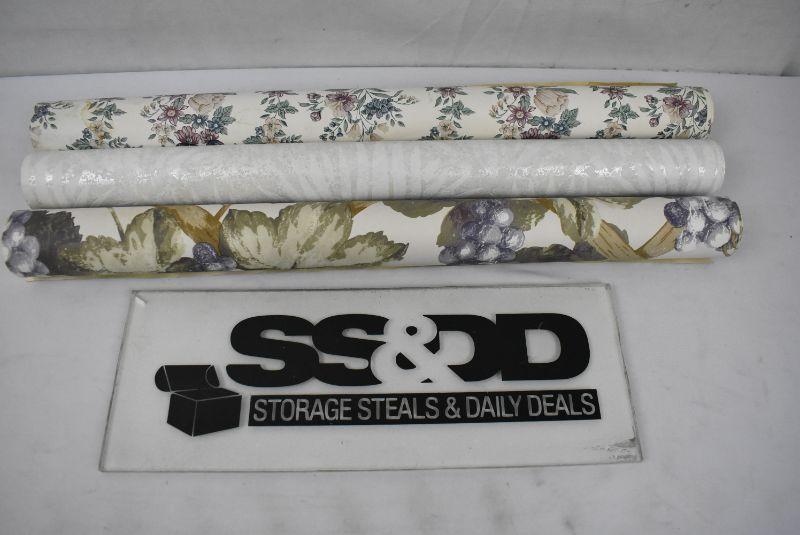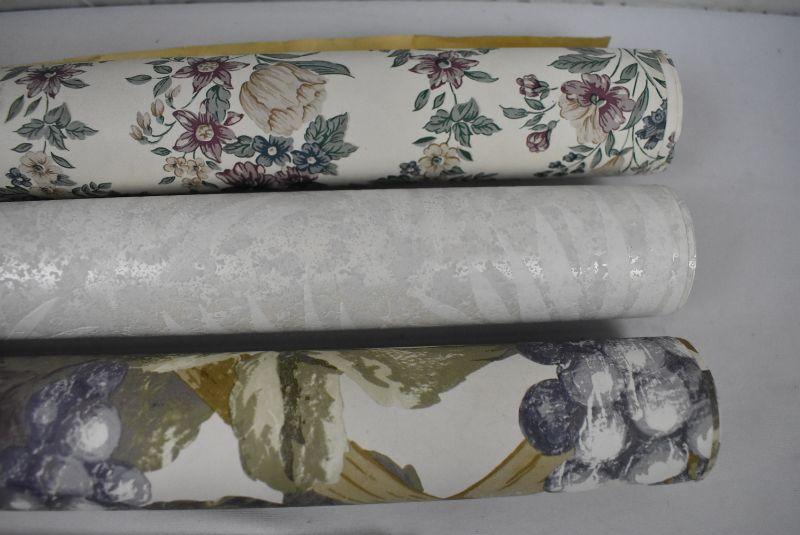 3 Rolls Wallpaper. Grapes, Floral, and White on White leaves
