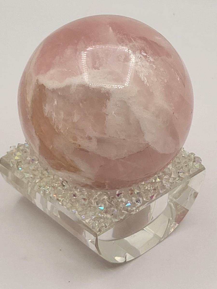 Nice marbling, rose quartz 3" ball/sphere/orb.