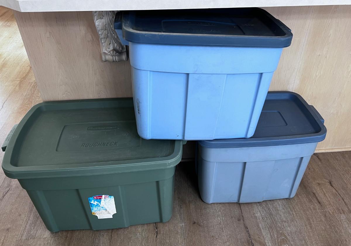 3 Rubber Maid Tubs with Lids