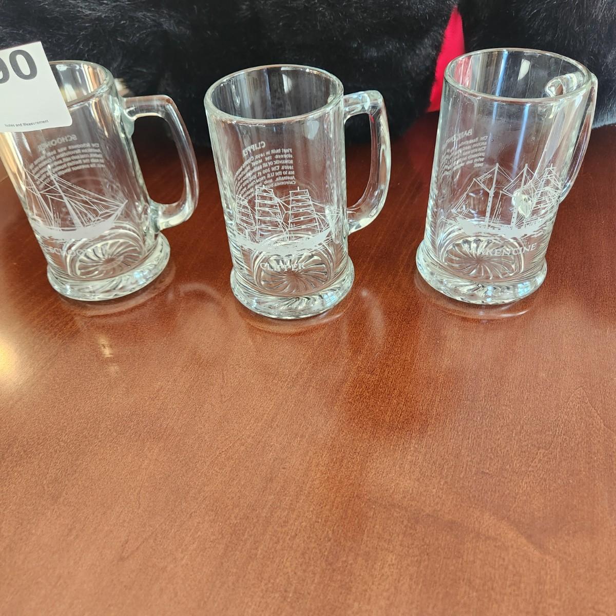 3 Sailing Ships Boat Mugs Schooner, Clipper, Barkentine