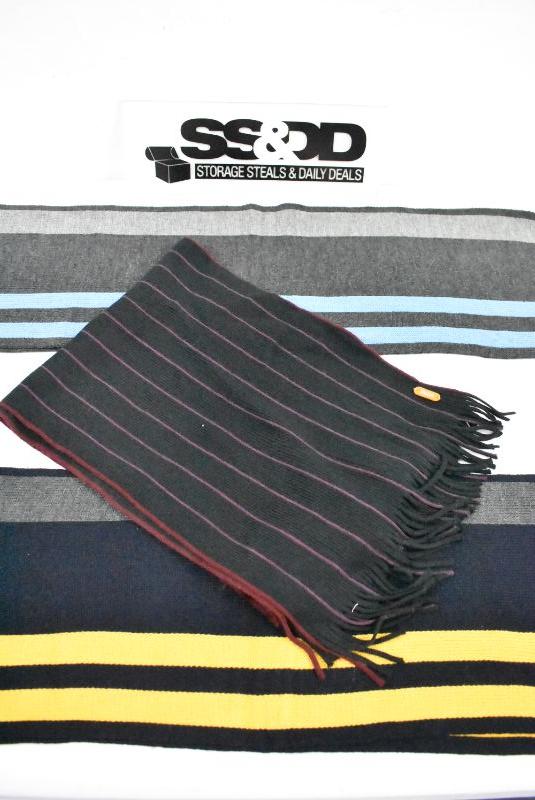 3 Scarves: Gray/Blue, Black/Maroon, and Navy/Gray/Yellow