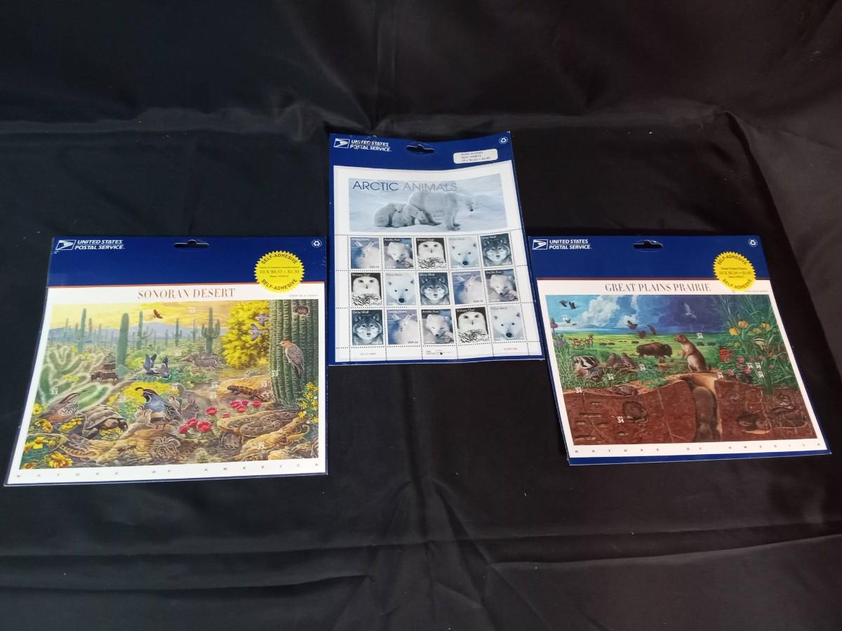 3 SEALED SHEETS OF POSTAGE STAMPS