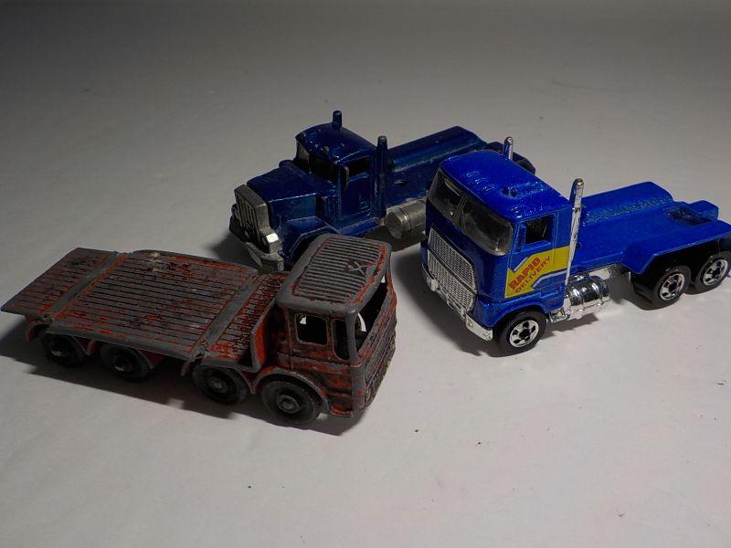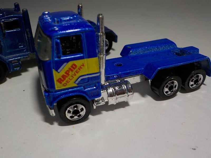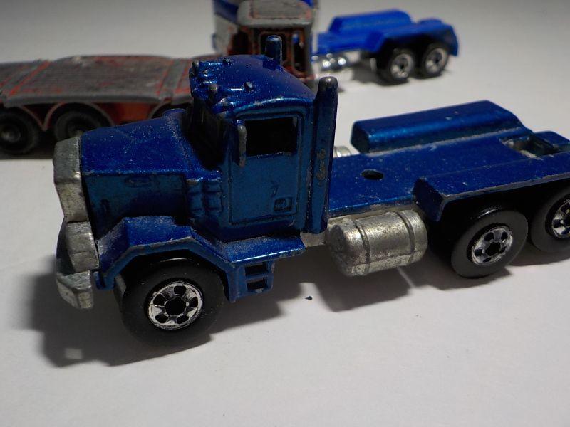 79 "Peterbilt" hot wheels, Stake truck no. 10. 1981 blue semi.