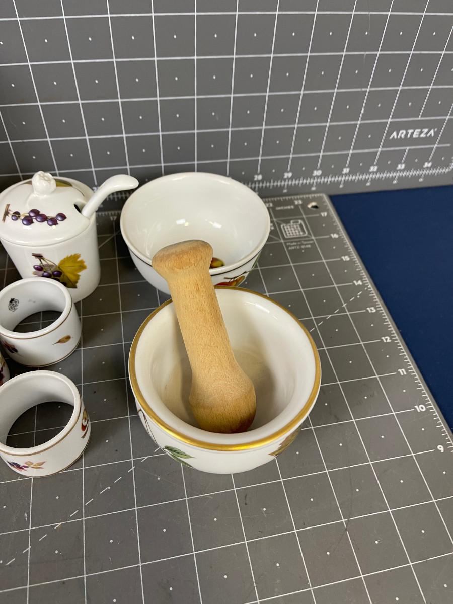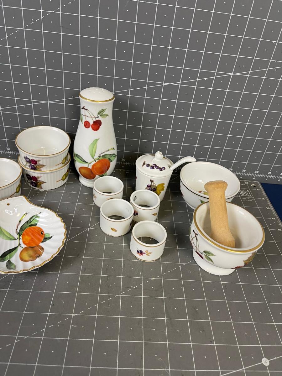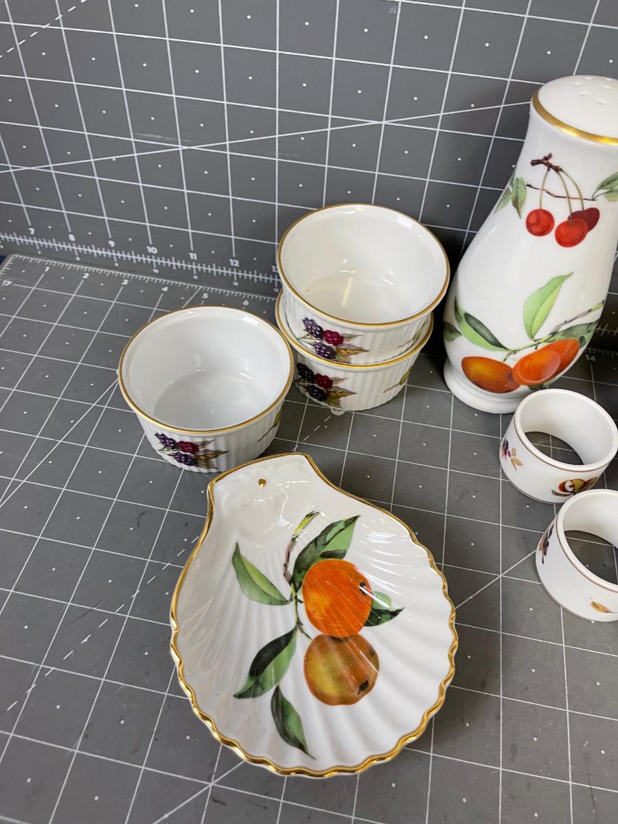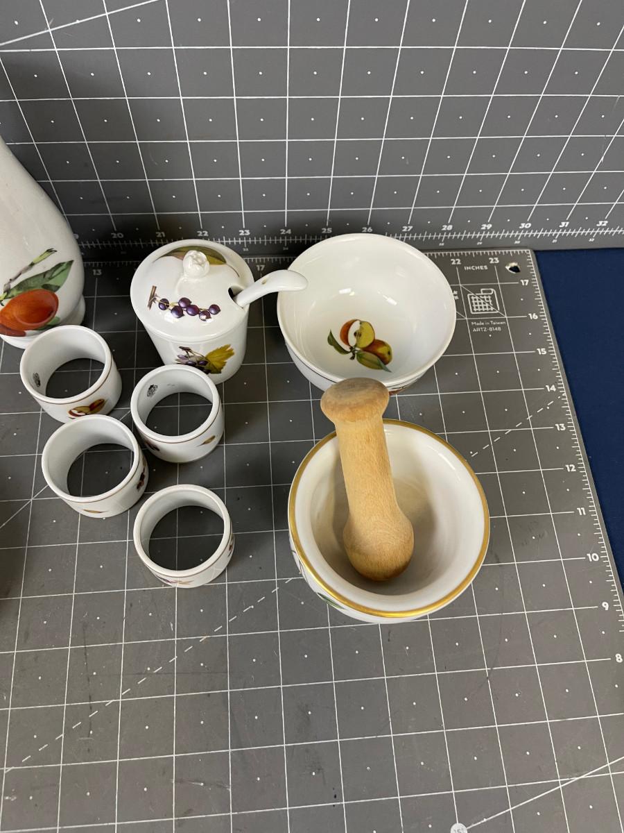 3 Serving Pieces: Sugar Shaker, Ramekin, Jam and napkins ring, Clam Shell
