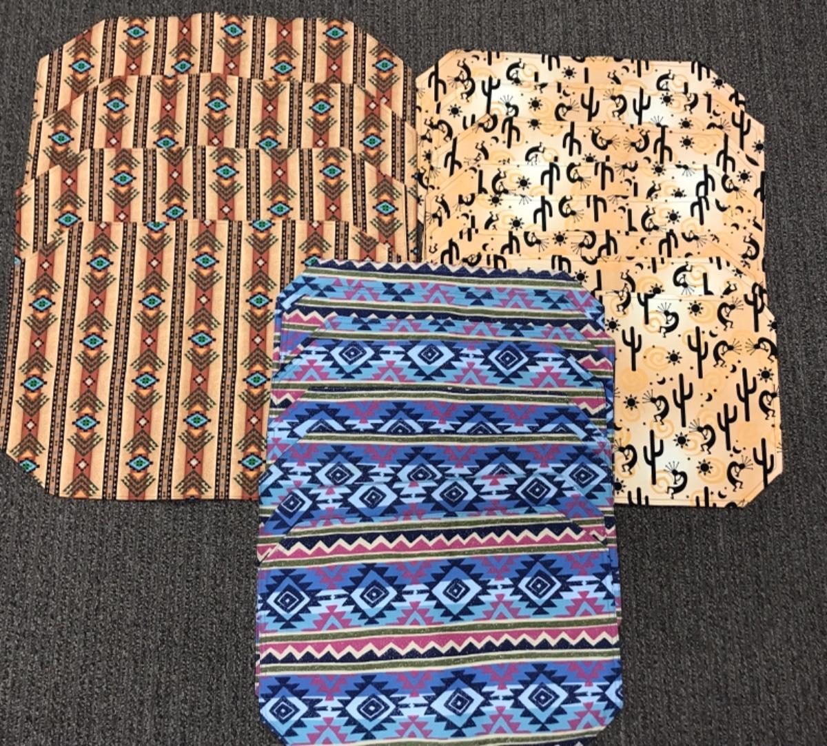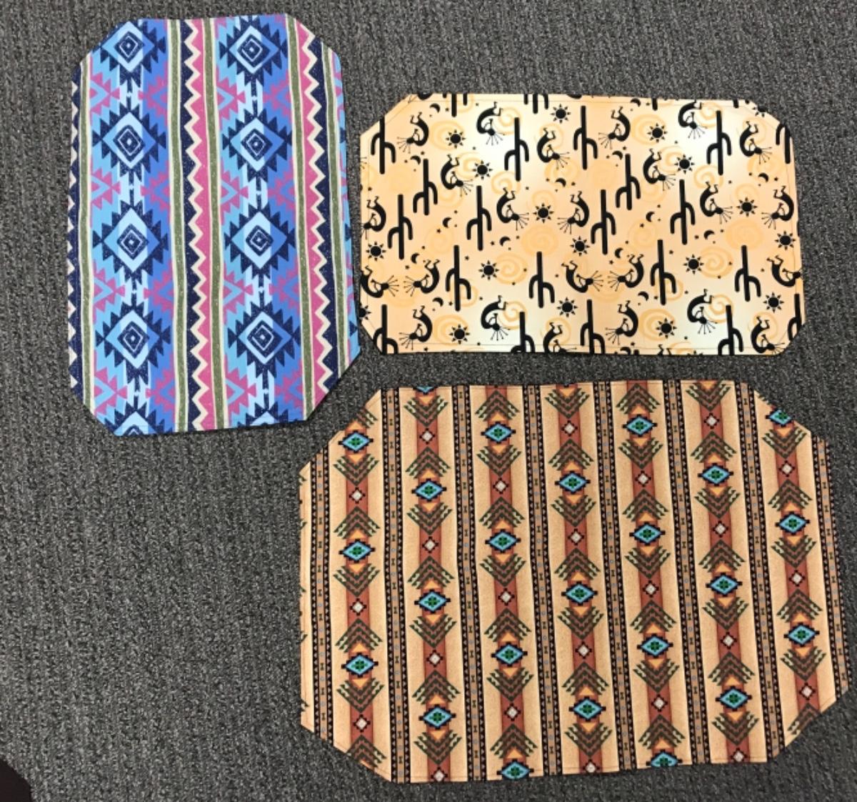 3 sets of homemade cloth placemats Southwest pattern designs