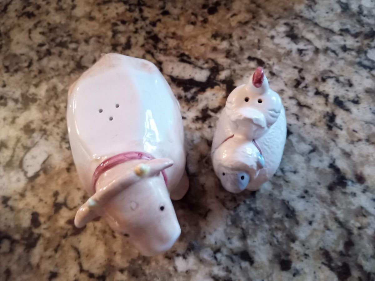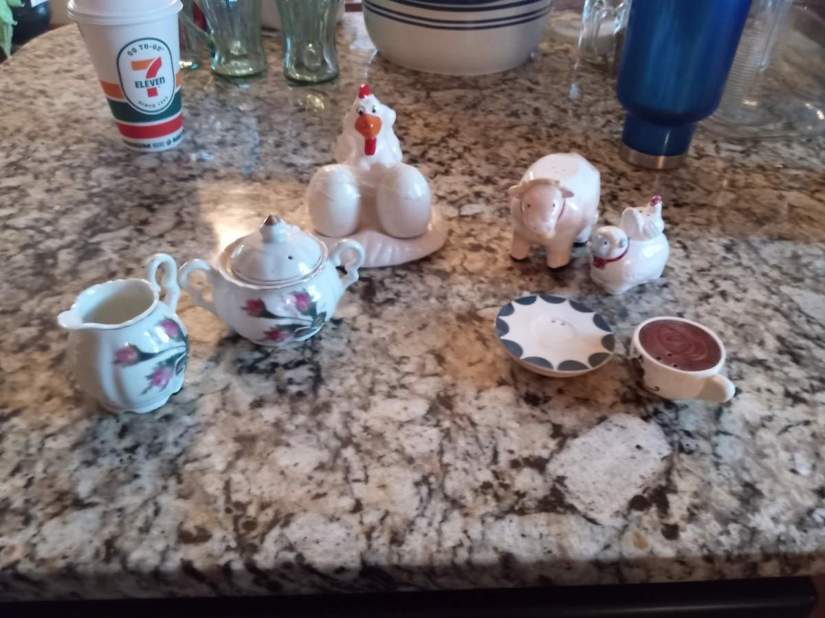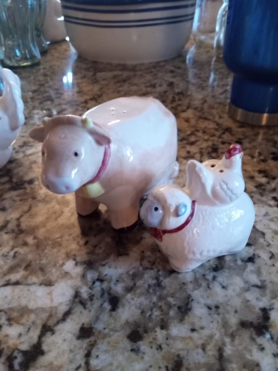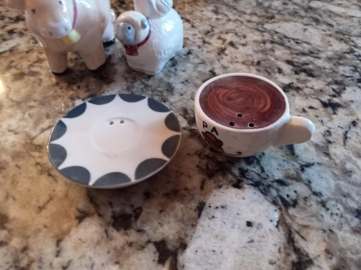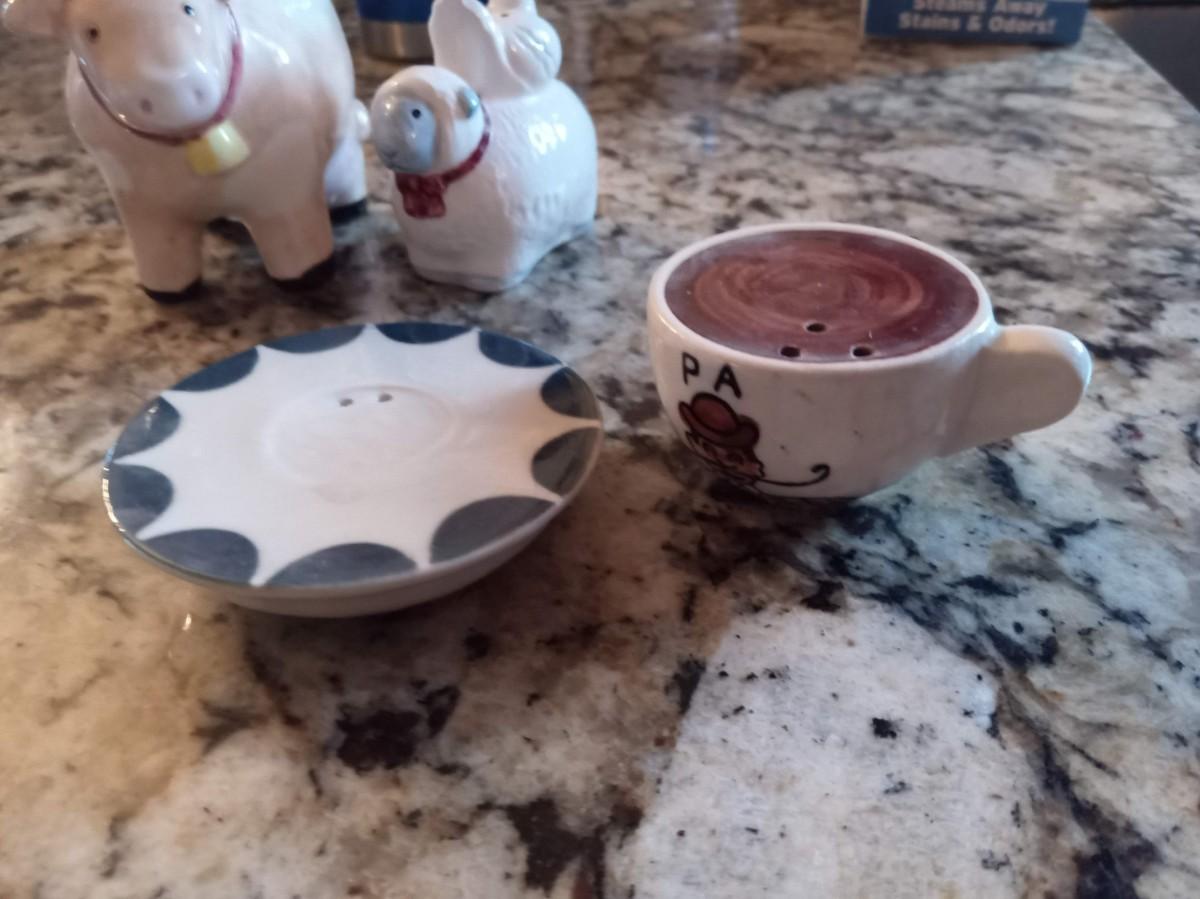 3 SETS OF SALT/PEPPER SHAKERS AND A CREAM/SUGAR SET